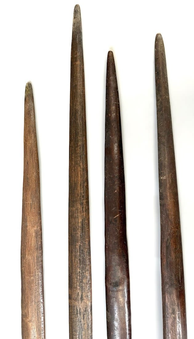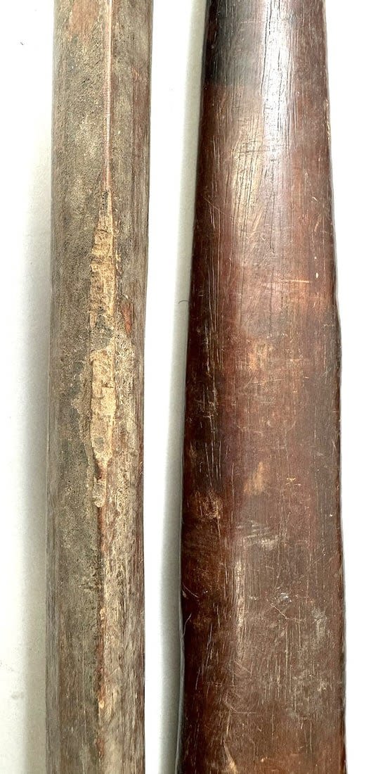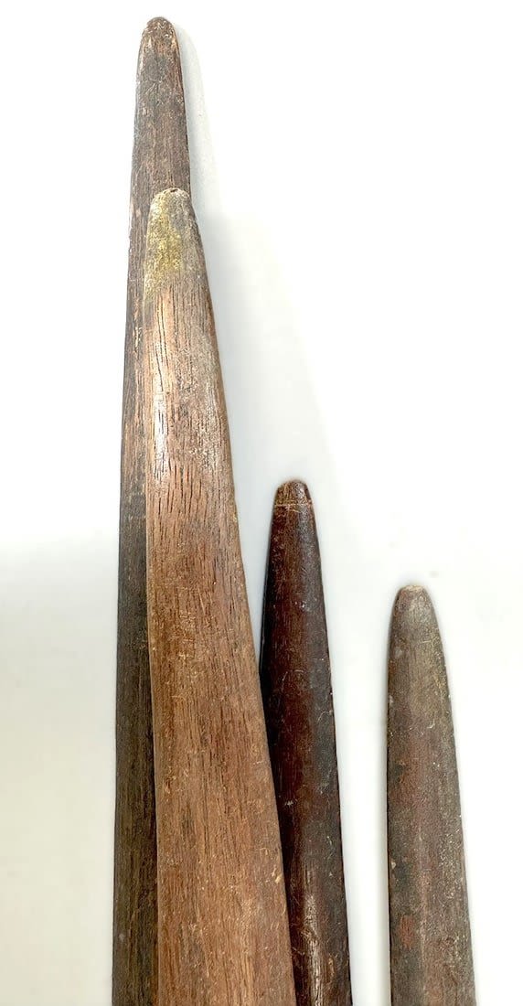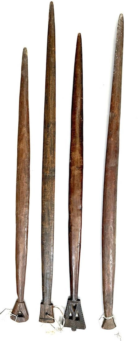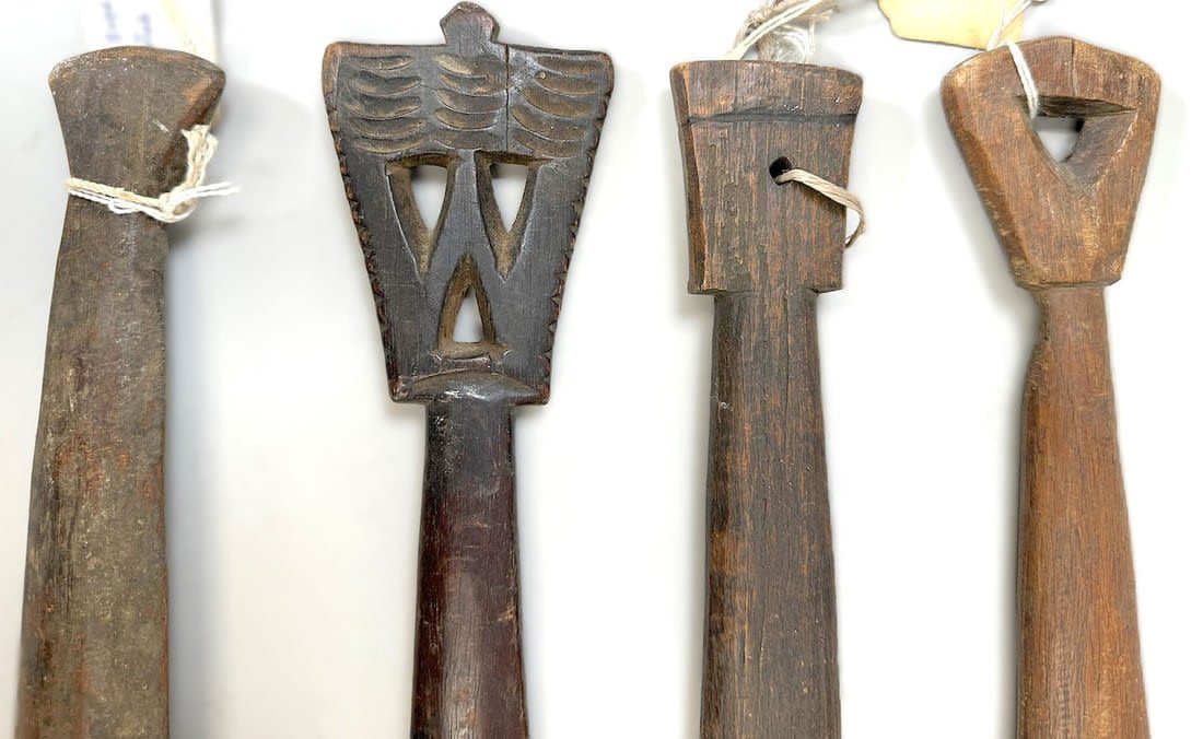 Four Nup peoples wood weaving sticks, Nigeria, West Africa. Condition: Fair; scratches, dents, wear consistent with age