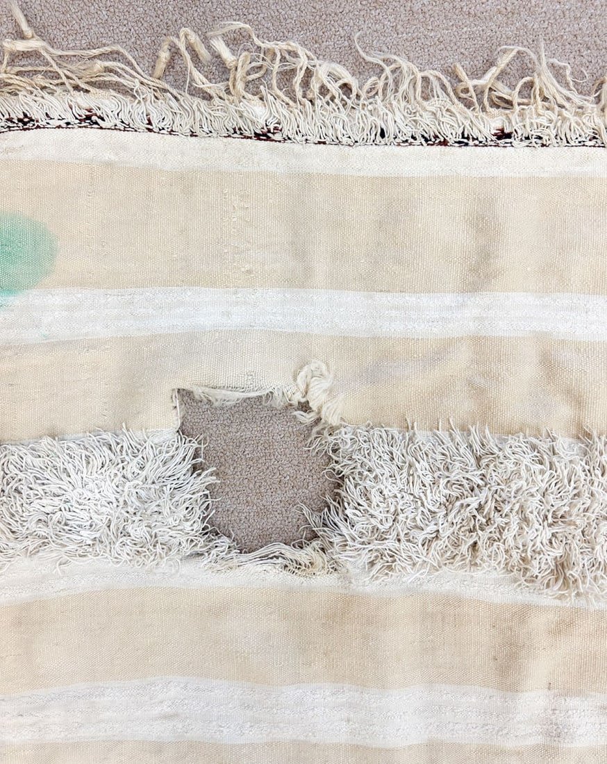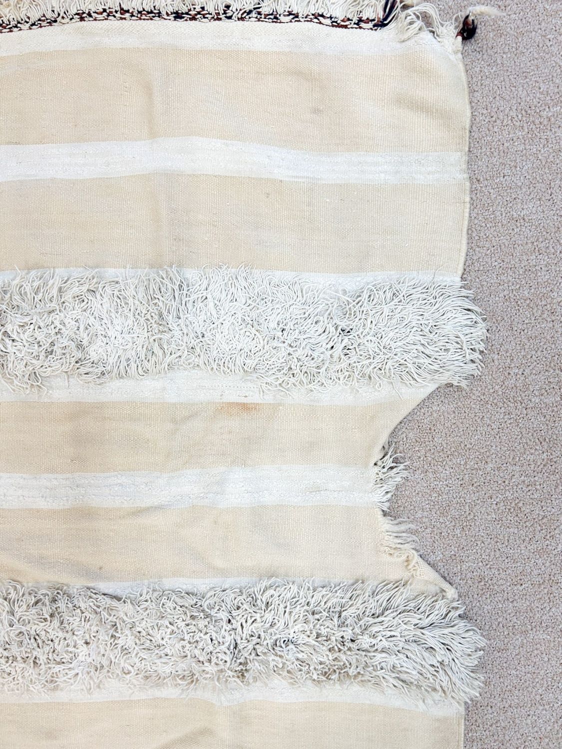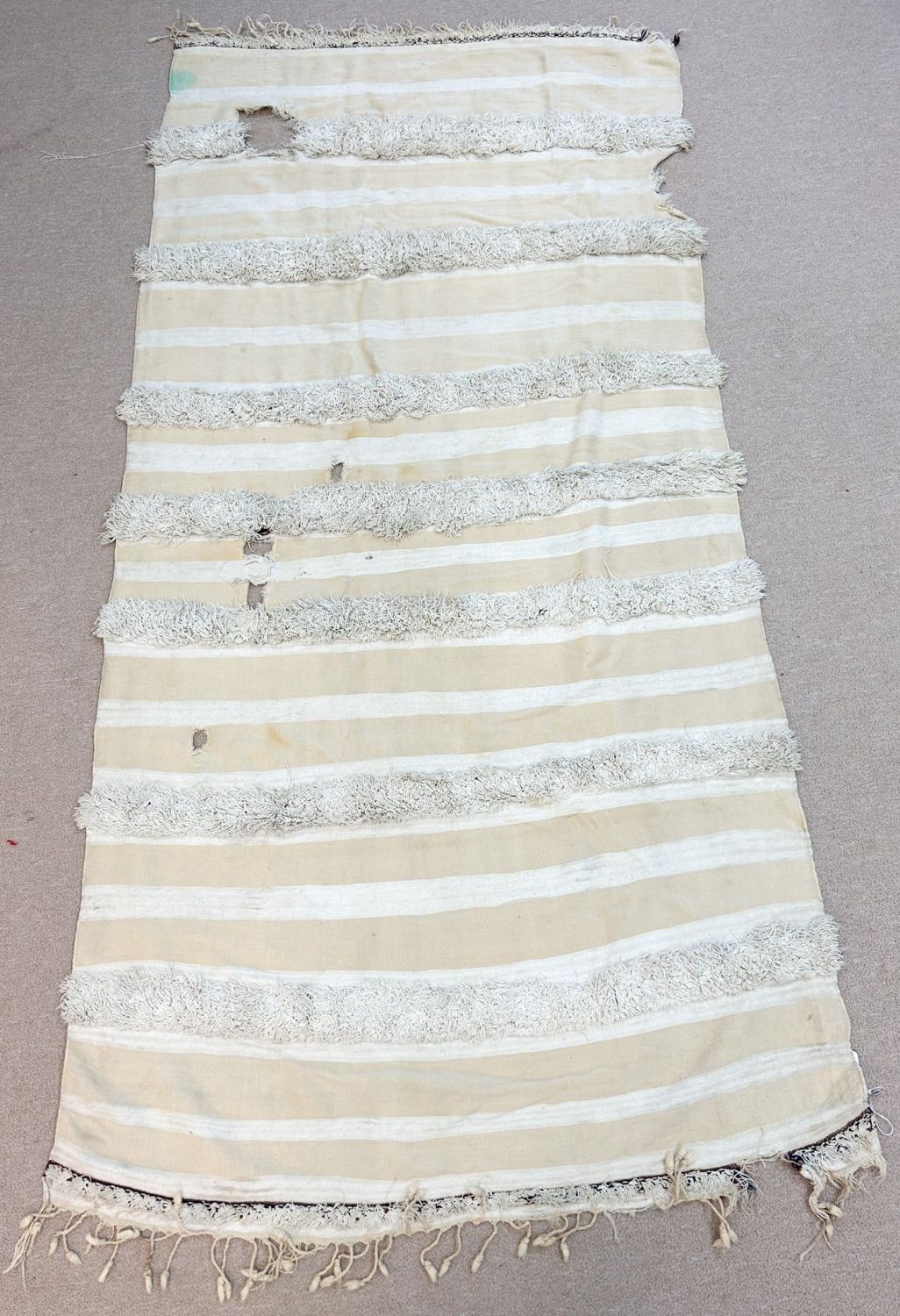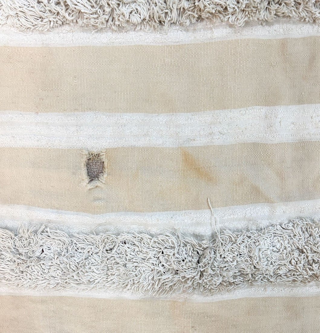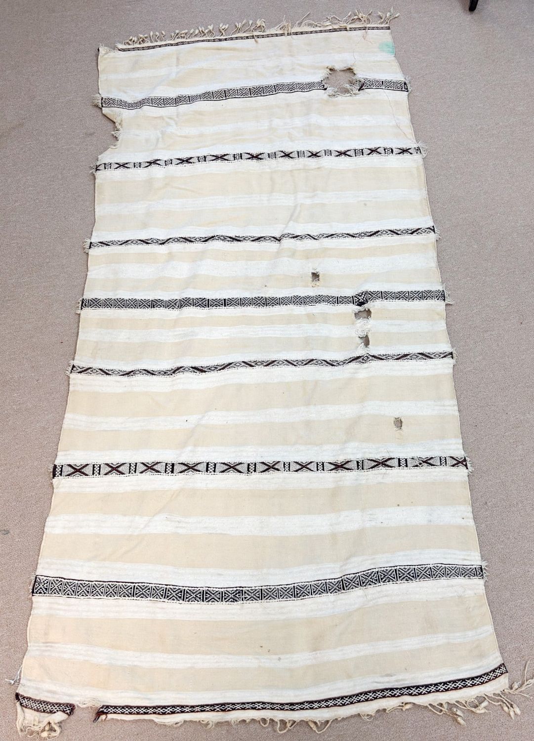 Wool blanket, with red, black and white banding, significant tribal use, Morocco, North Africa, 88" x 44"