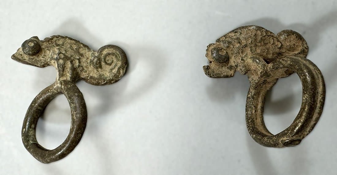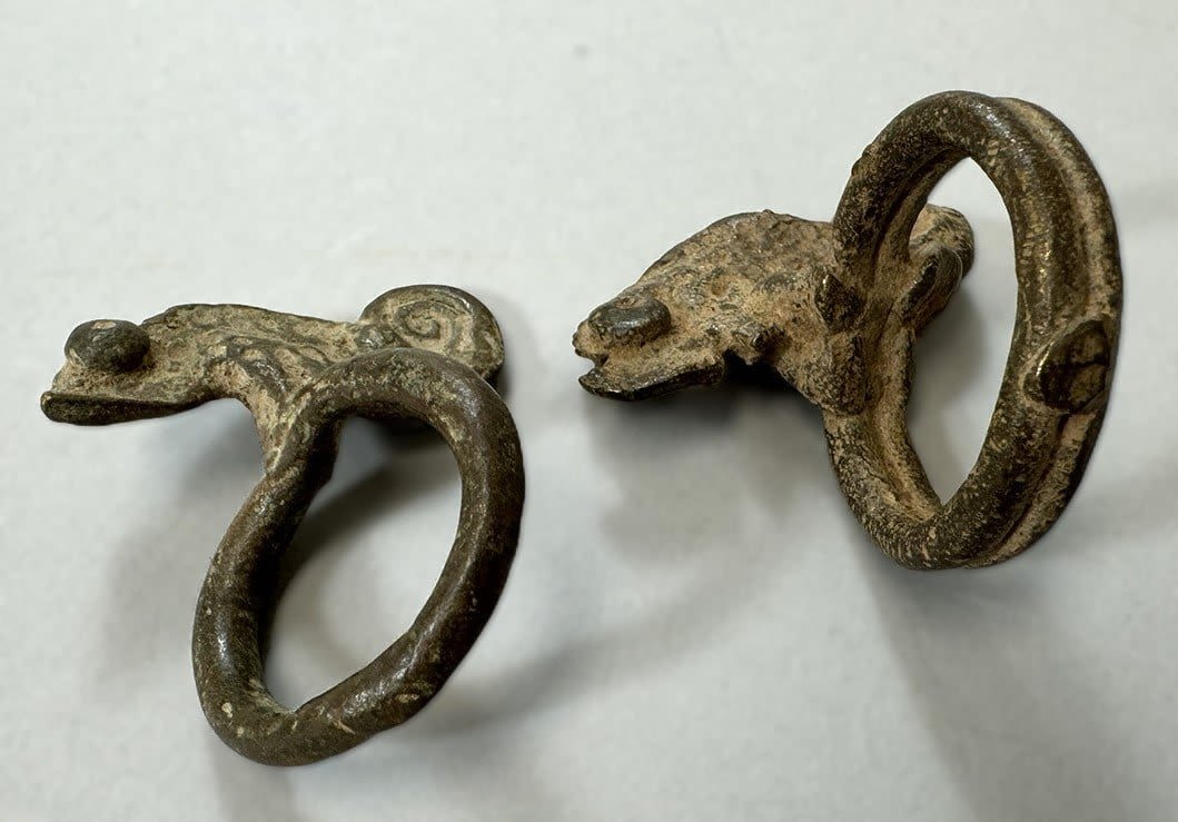 Two Lobi Burkina Faso Rings. D: Large ring L1.75 x 1.50W, Small ring 1.5 x 1.5 in. Condition: Good, wear consistent with age.