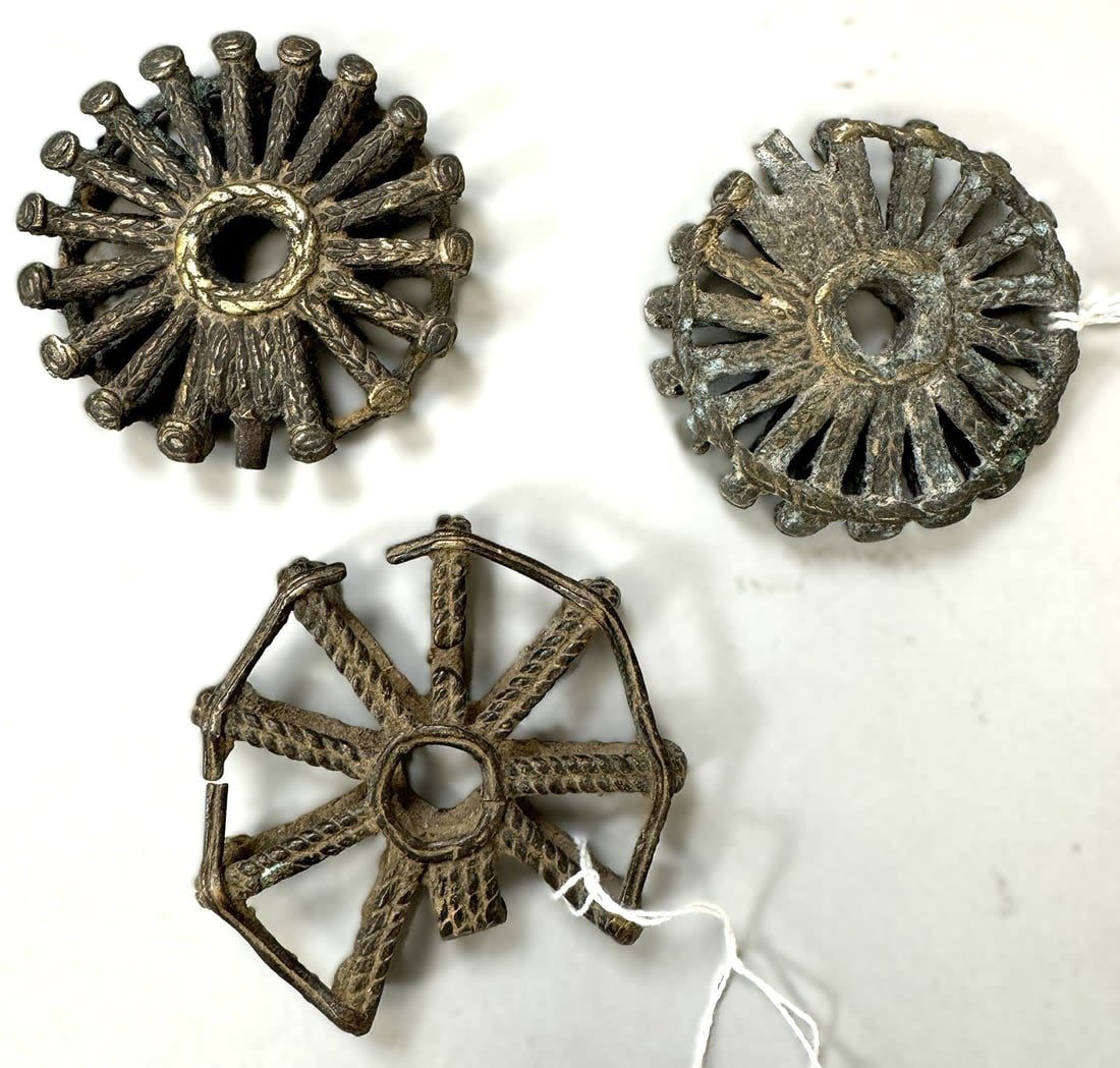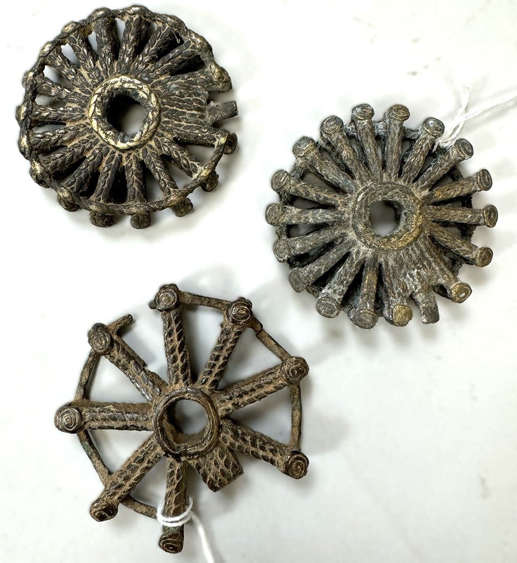 Three (3) Dogon peoples copper alloy pendants, Mali, West Africa. Dimensions (approx.): 2.75" diameter
