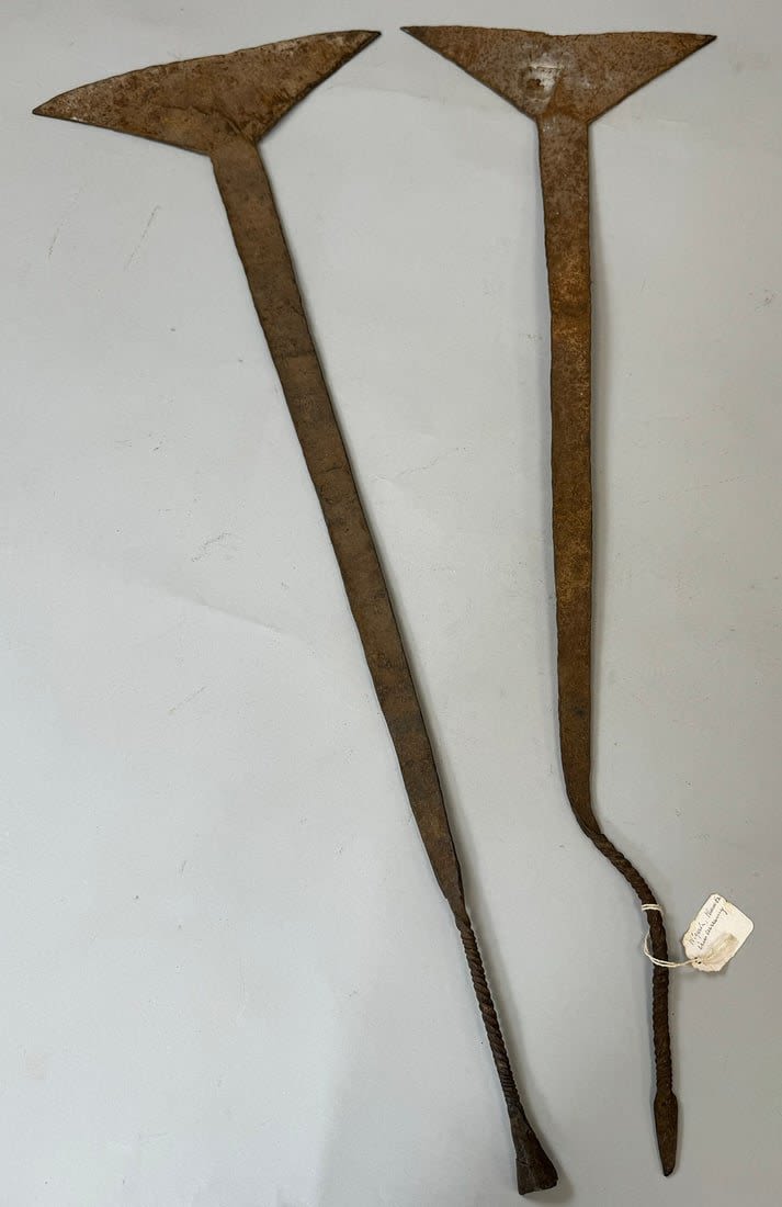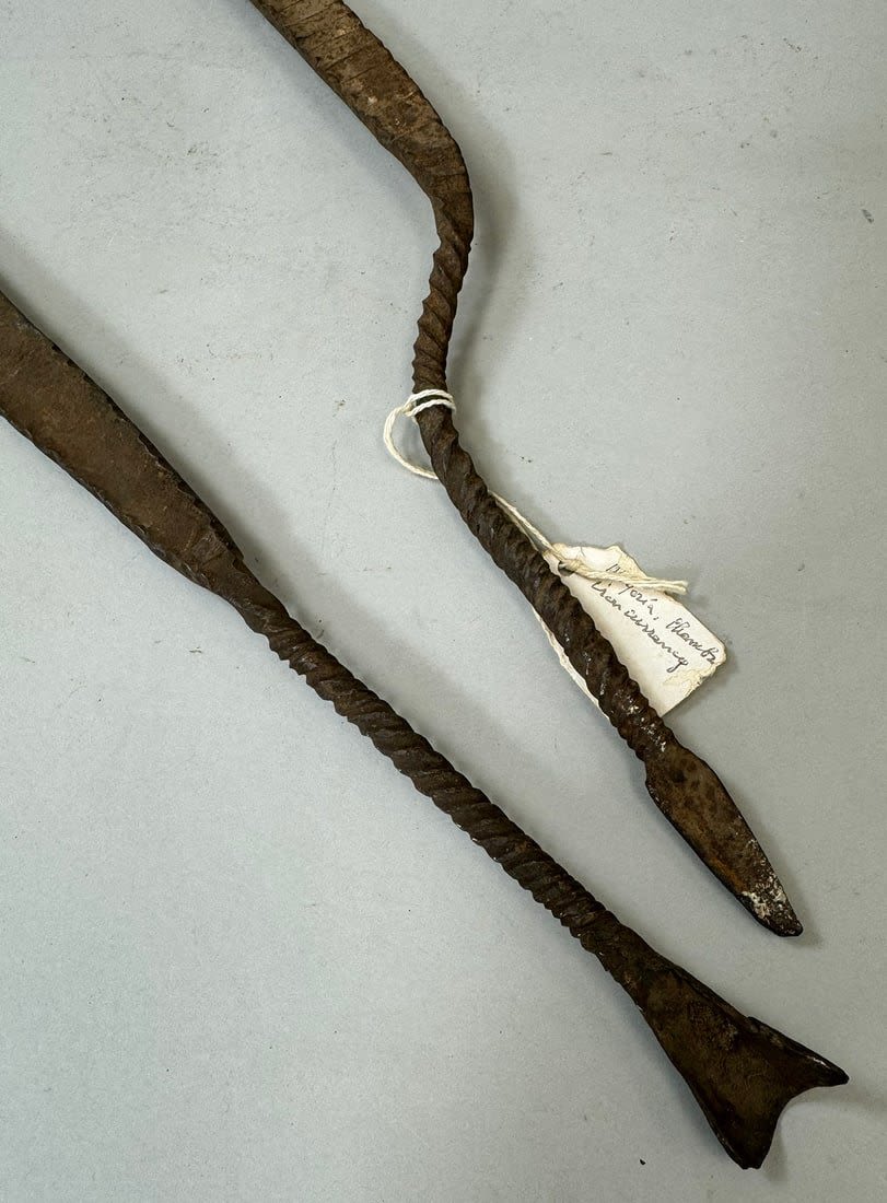 Two (2) wrought iron Idoma currencies, Nigeria, West Africa. Dimensions (approx.): 30.5" long (each)
