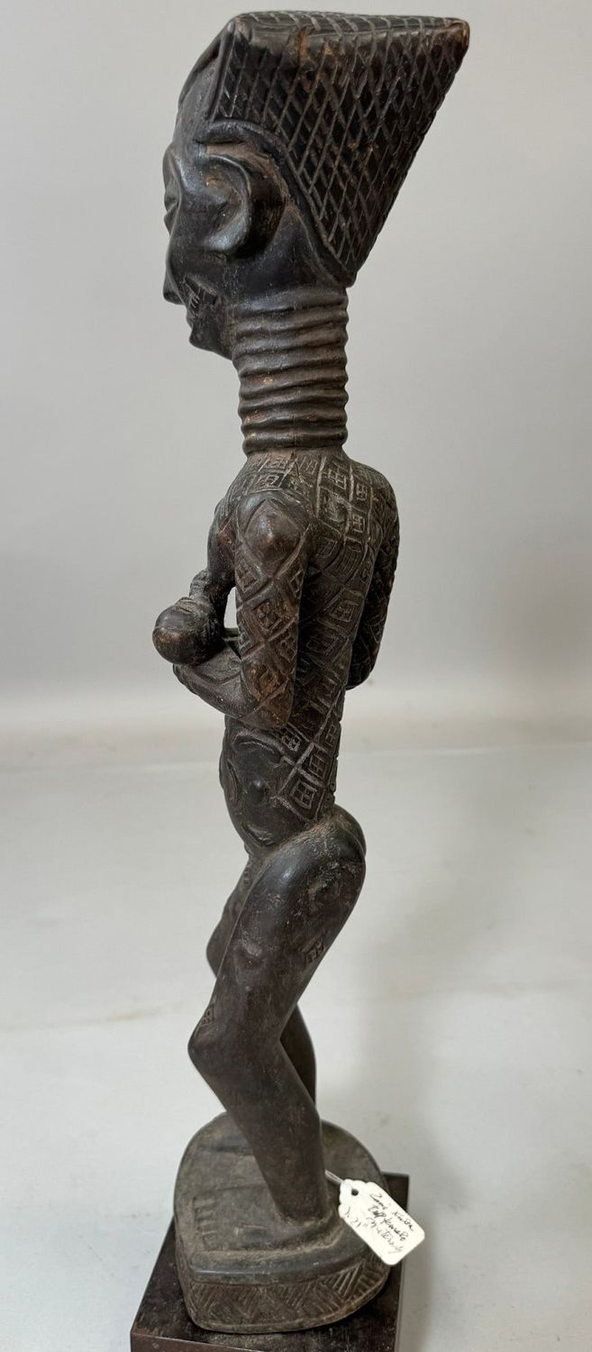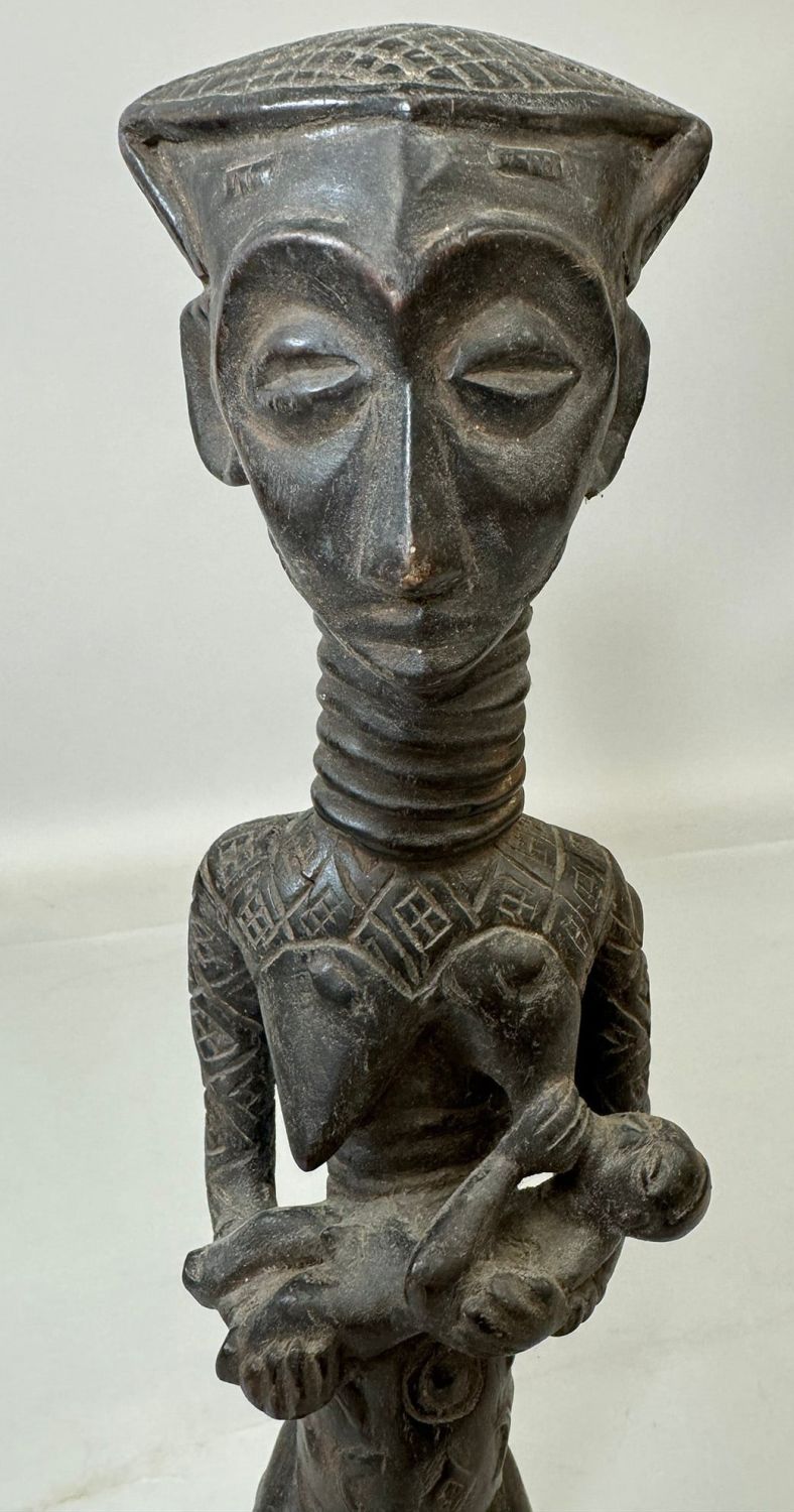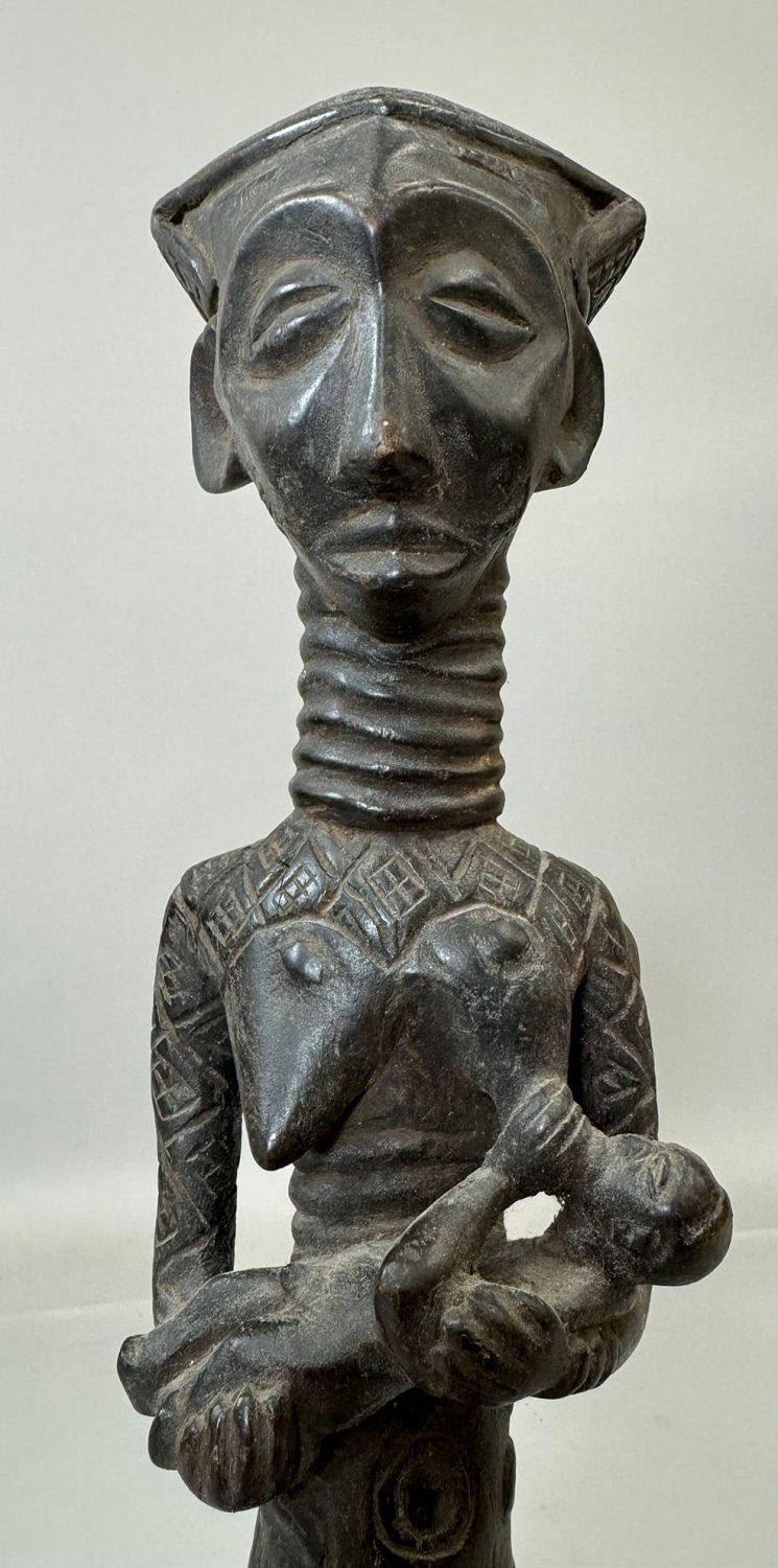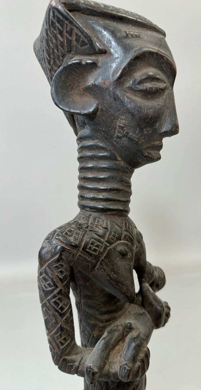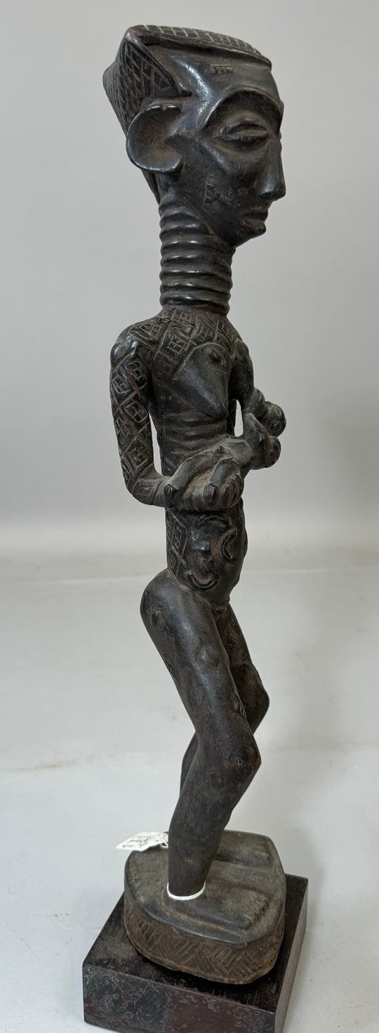 Kuba style female maternity wood carving, Democratic Republic of the Congo, Central Africa. Dimensions (approx.): 21" x 4" x 4"