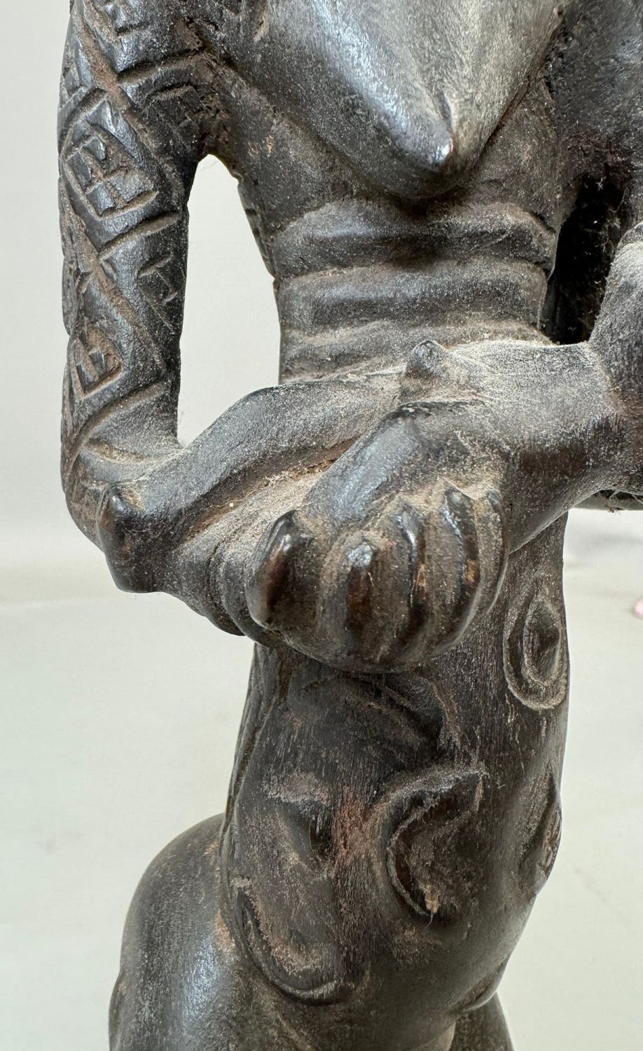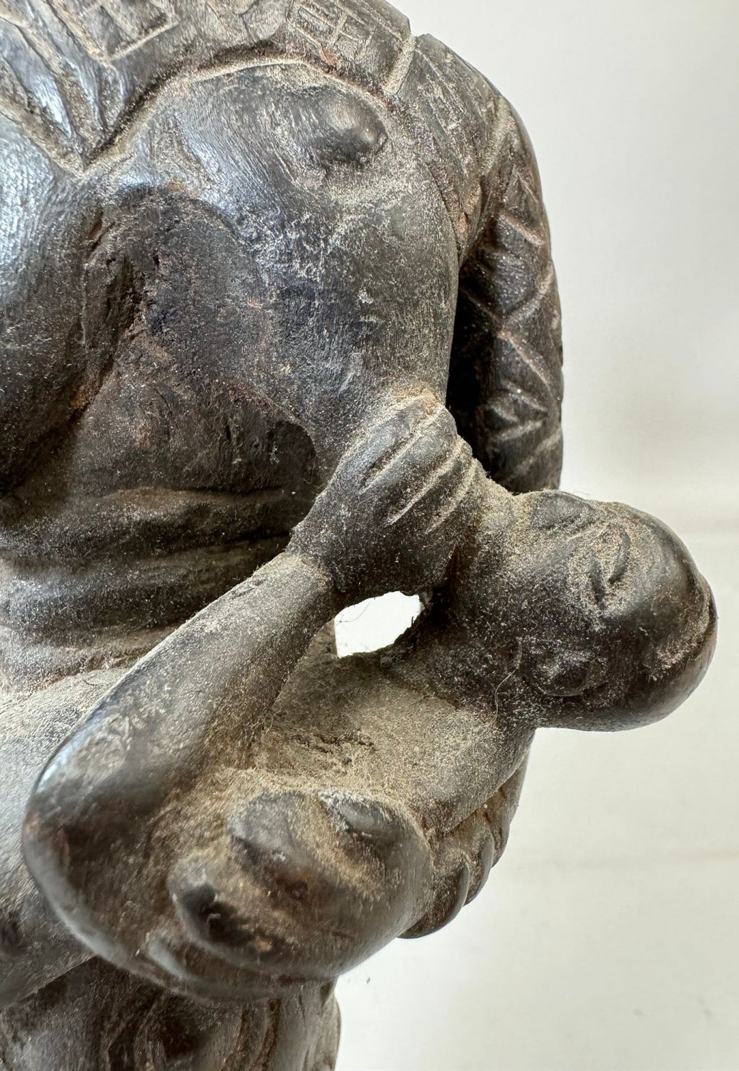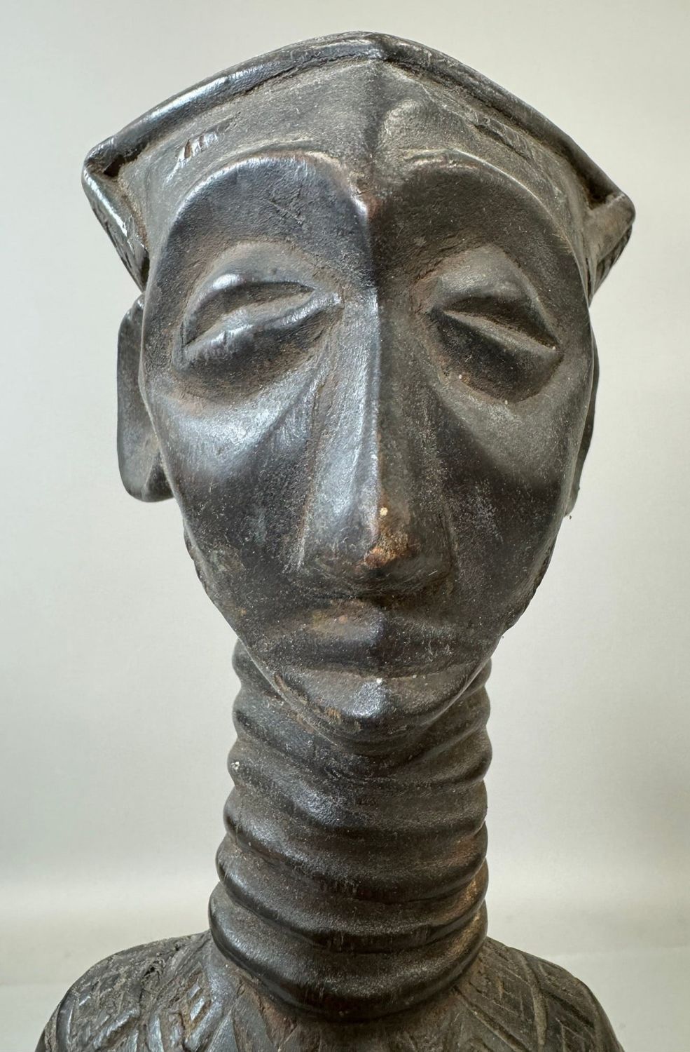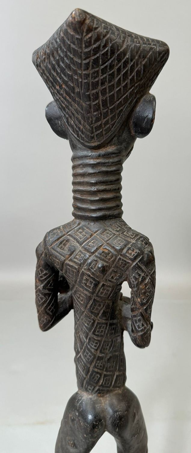 Kuba style female maternity wood carving, Democratic Republic of the Congo, Central Africa. Dimensions (approx.): 21" x 4" x 4"