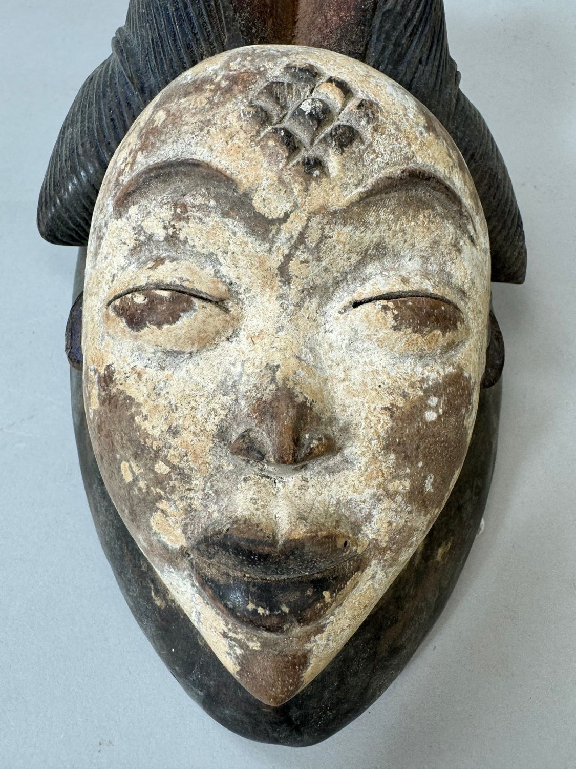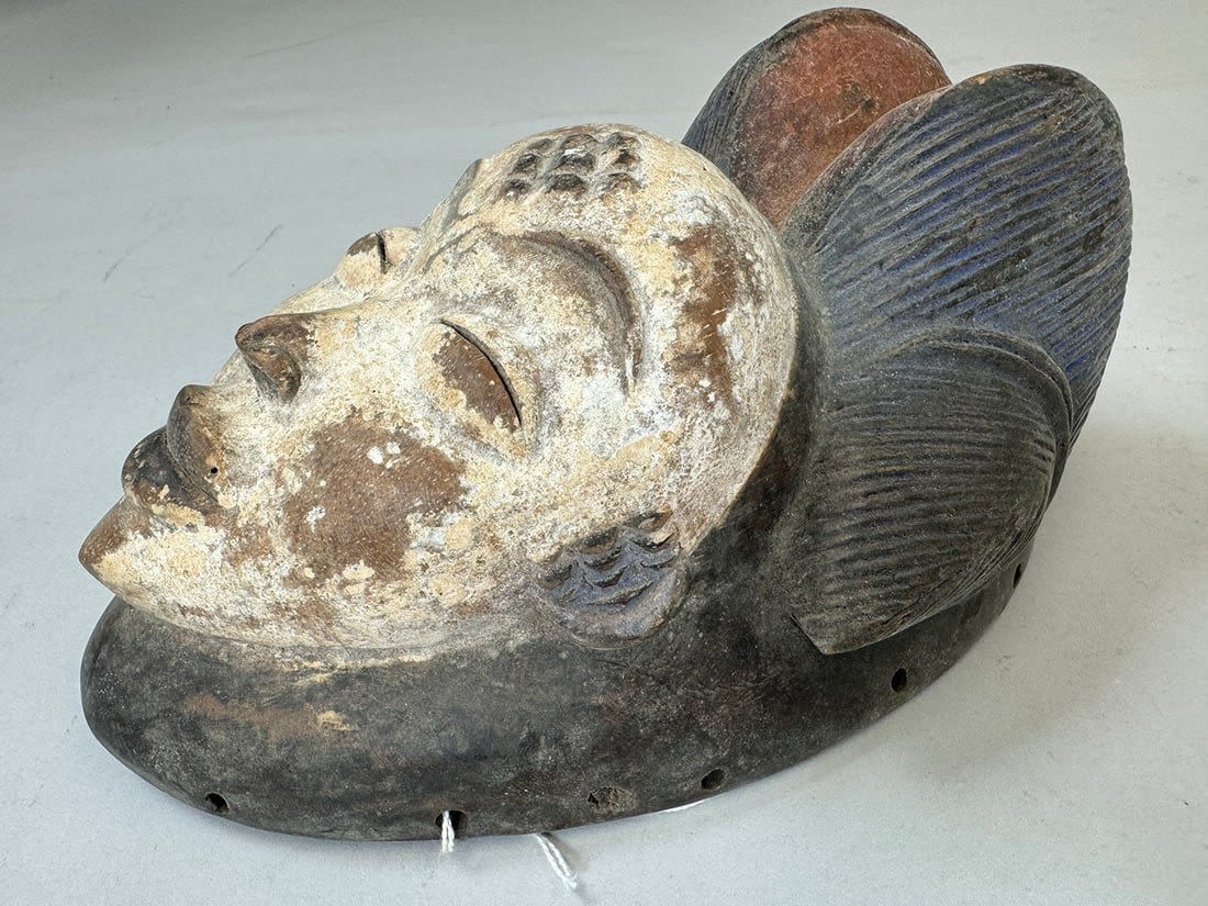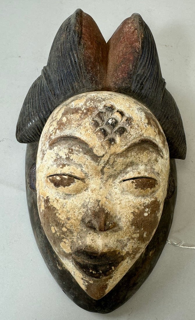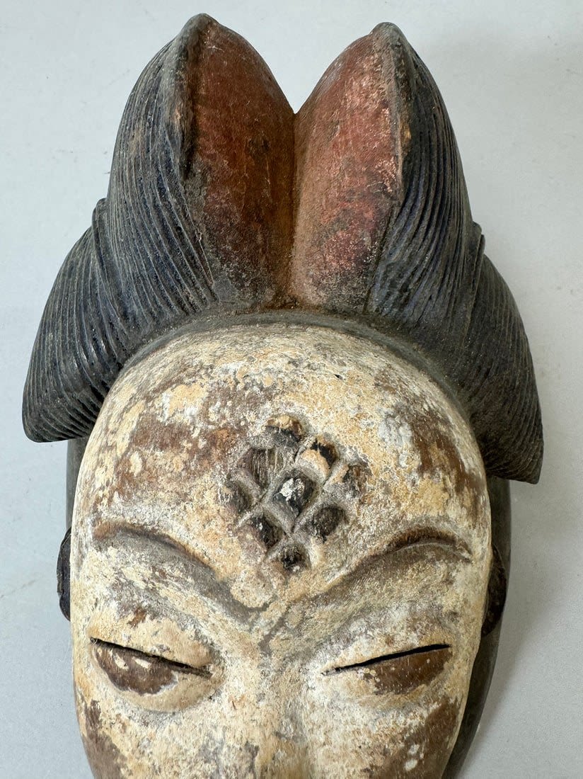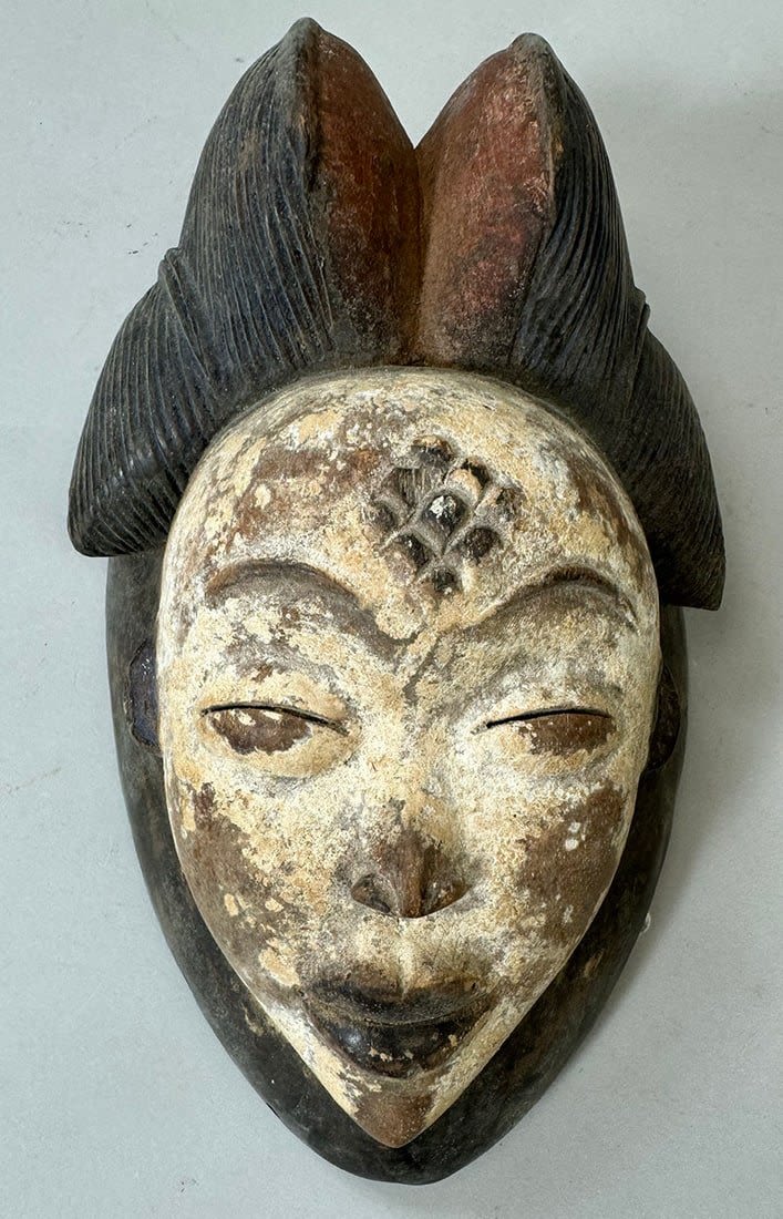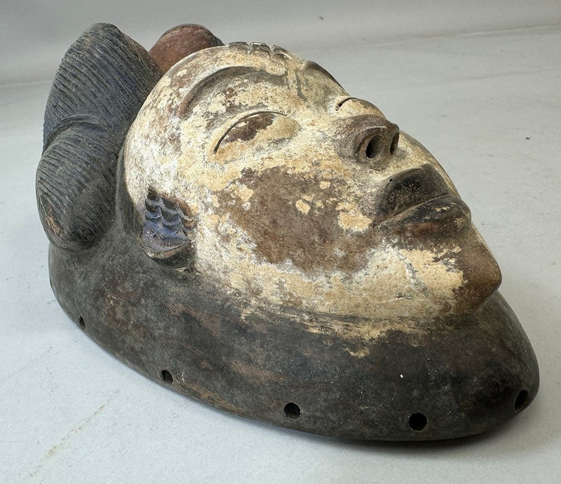 Punu style mask, wood, Gabonese Republic, Central Africa. Dimensions (approx.): 10" x 6" x 4.5"