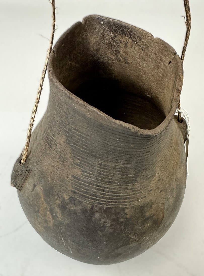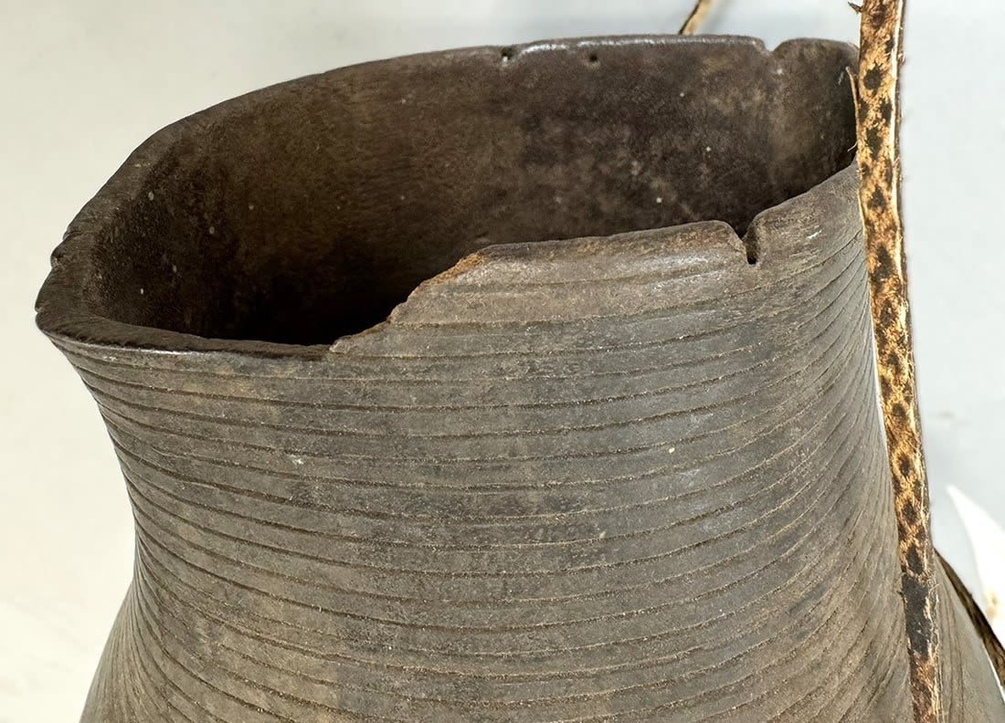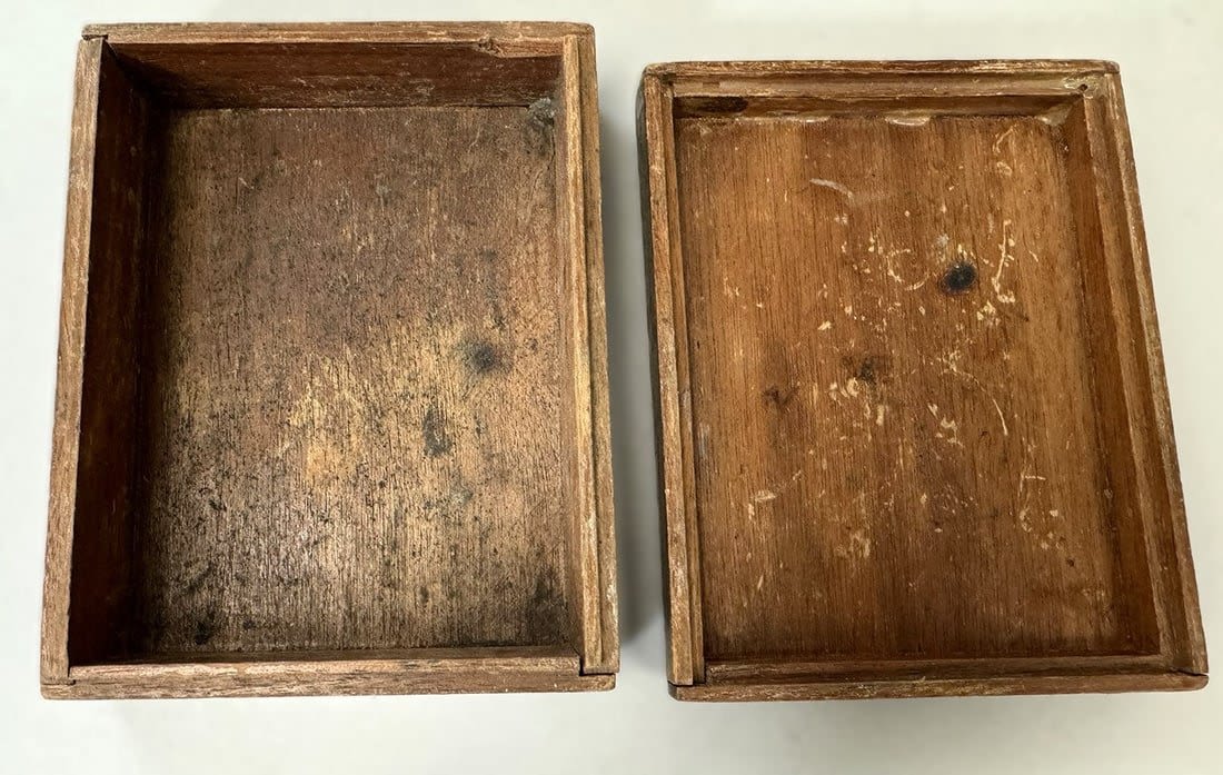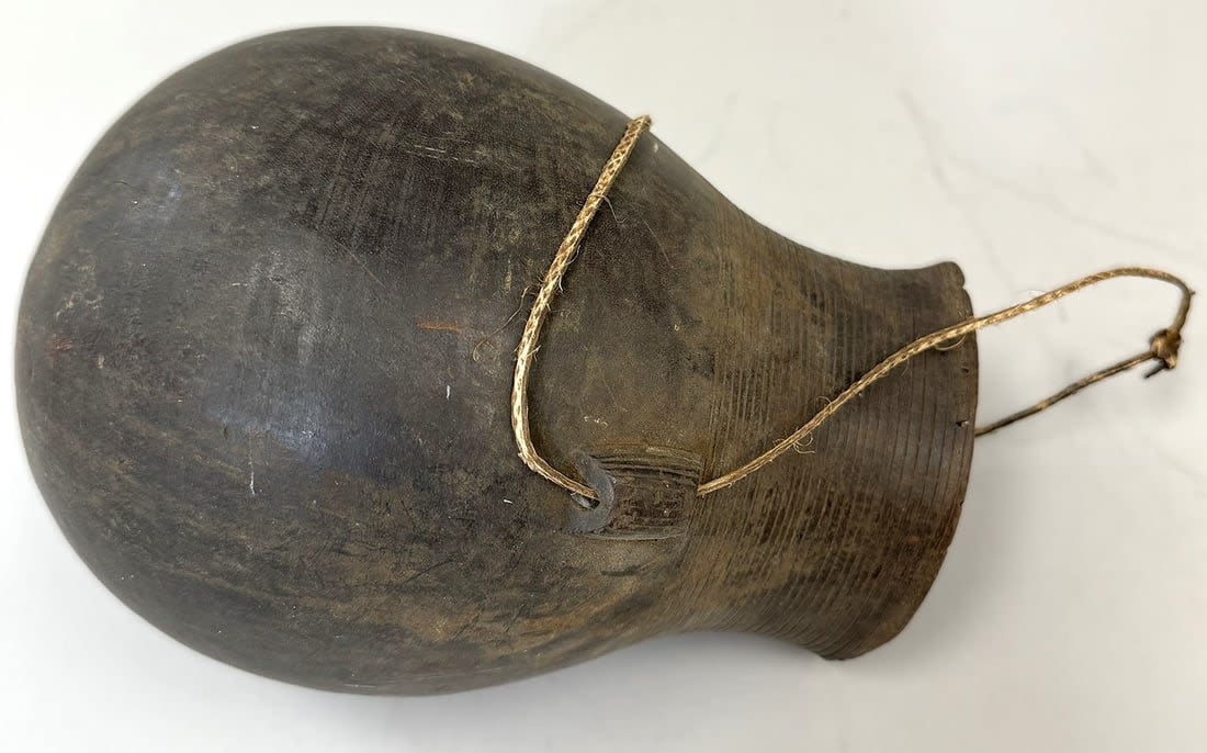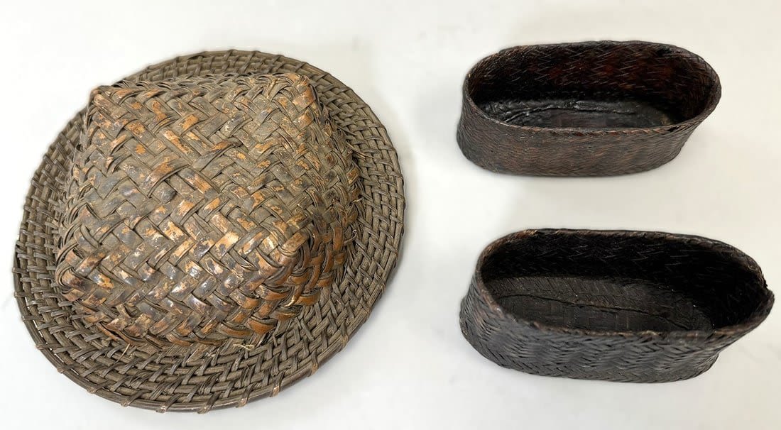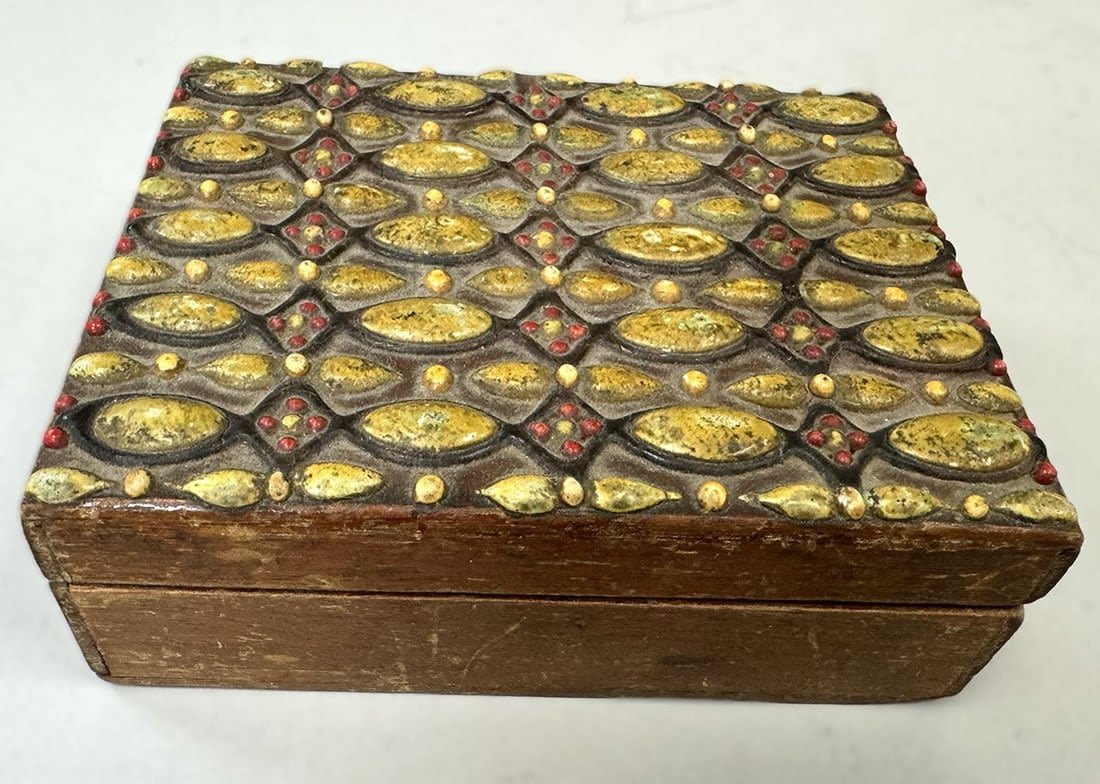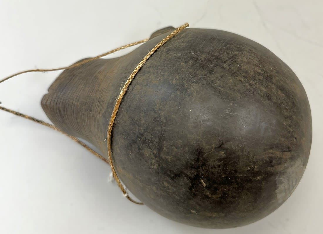 Four (4) Kuba items, including a tray, two boxes and a gourd vessel, Democratic Republic of the Congo, Central Africa. Dimensions (approx.): 9" high x 6.5" diameter (largest) to 4" x 2" x 1.5" (smallest)