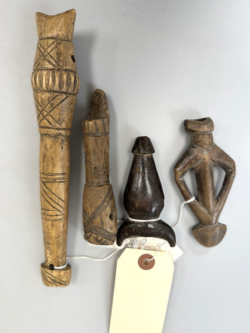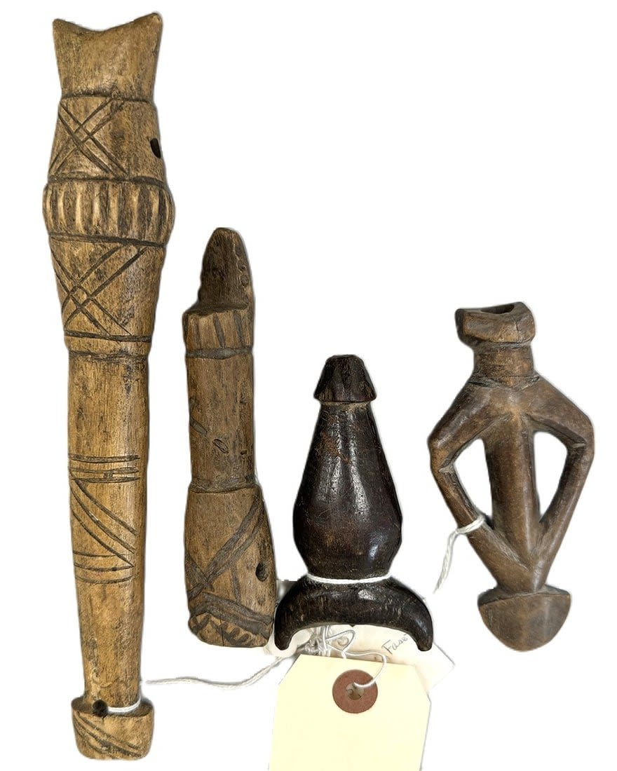 Four (4) whistles, Lobi and Gurunsi peoples, Burkina Faso, West Africa. Dimensions (approx.): 9.5: (tallest) to 4" (smallest)