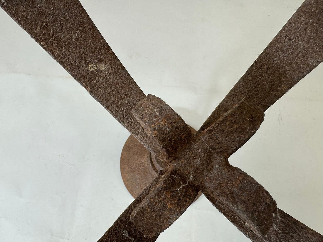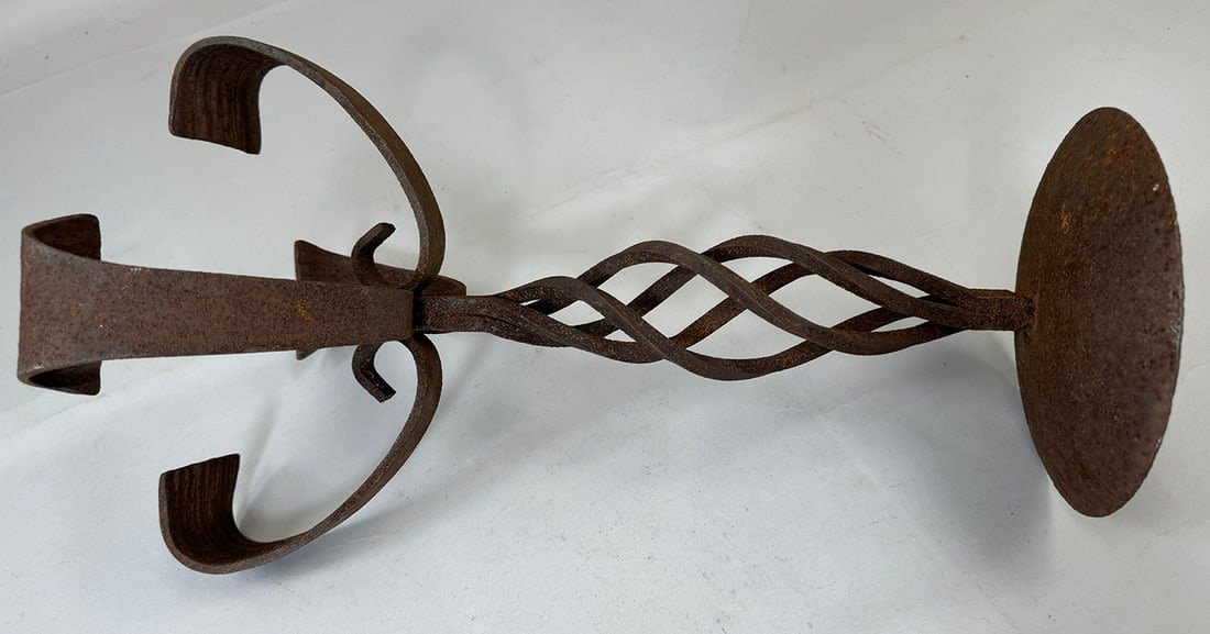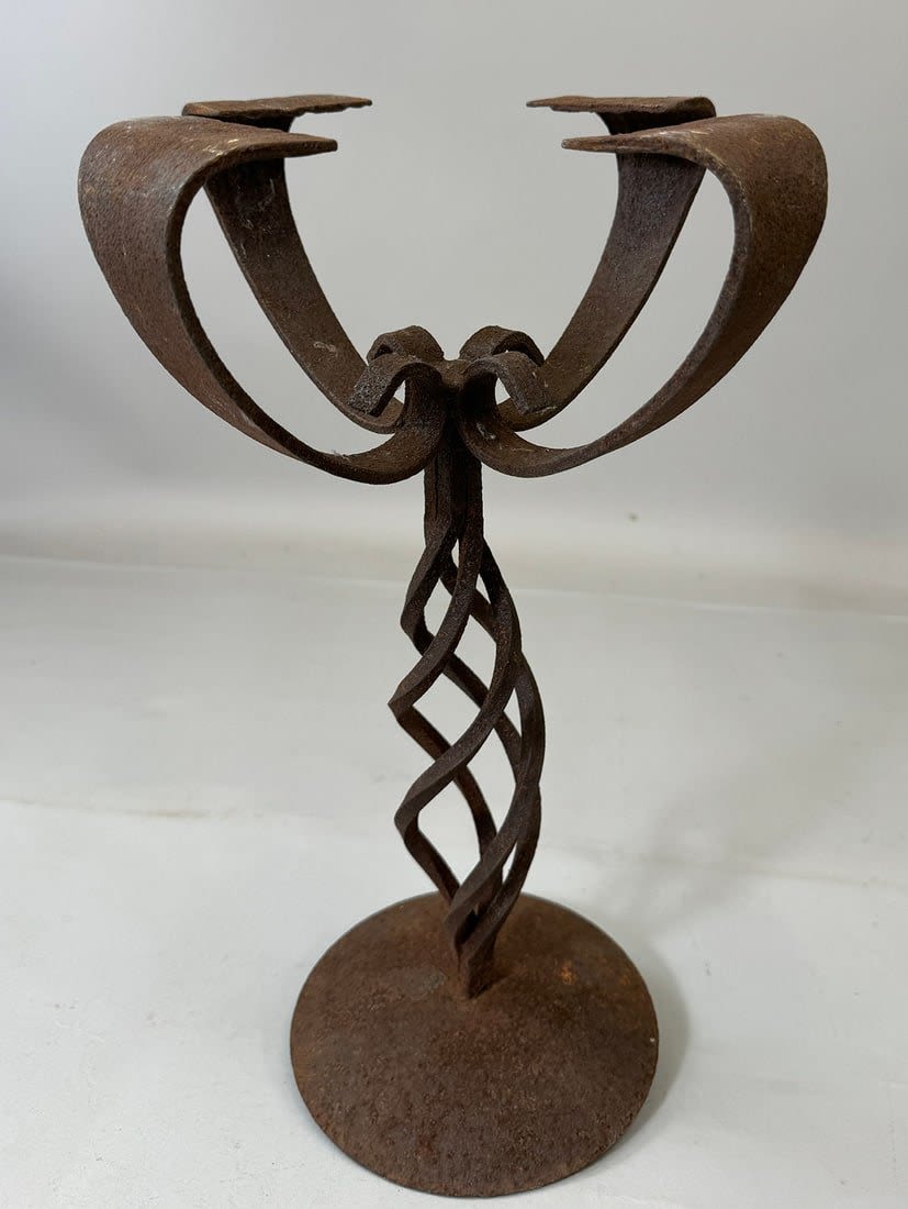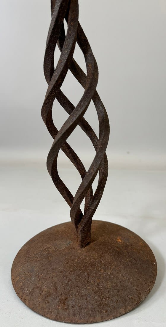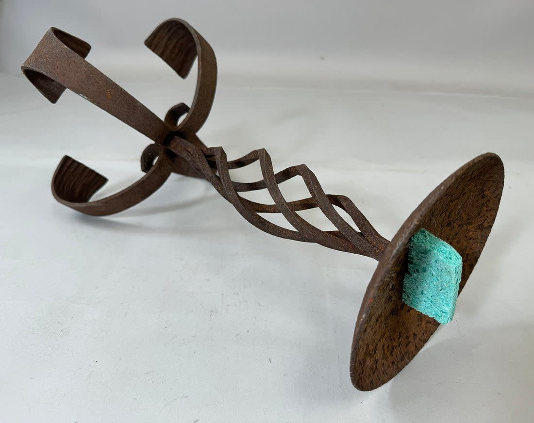 Forged iron stand for oil lamp/candle, Yoruba peoples, Nigeria, West Africa. Approximate size, 17.75" tall, 11" wide
