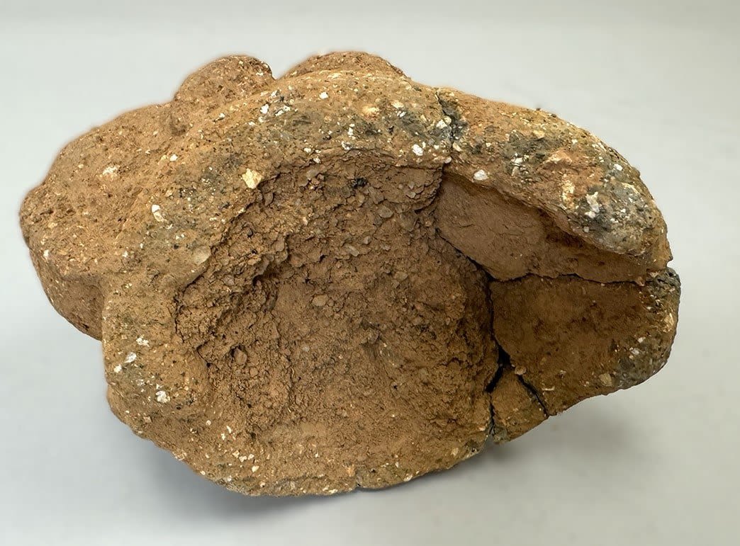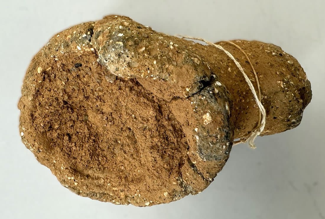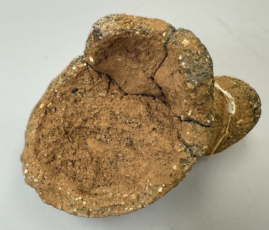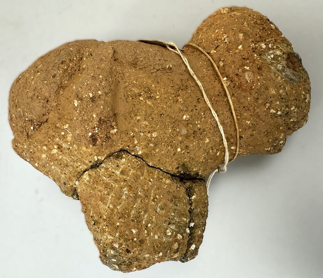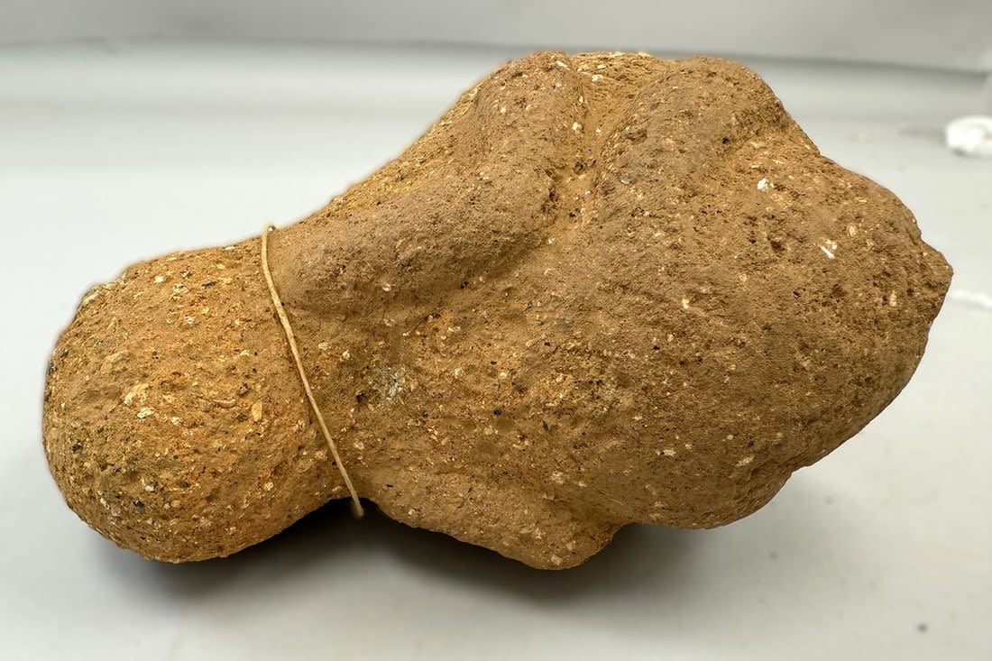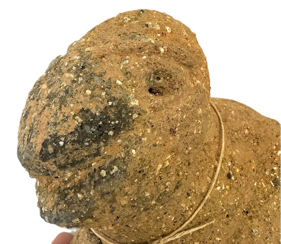 A terracotta fragment from the Nok culture (c.500BCE – c.1BCE), featuring an anthropomorphic figure surmounting a column or vessel, Nigeria, West Africa. Dimensions (approx.): 5.5" x 7" x 3.5"