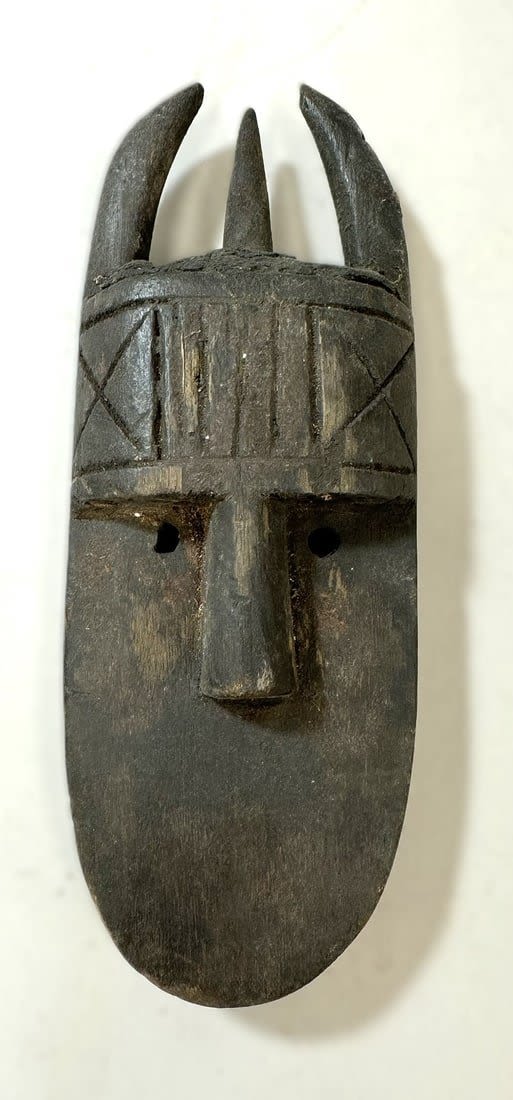 Toma style carved wood passport mask, Guinea, West Africa. Dimensions (approx.): 10" x 3.75" x 1.75"