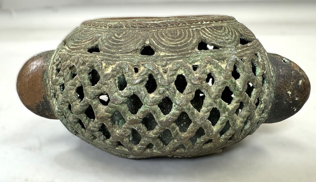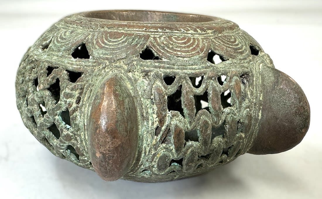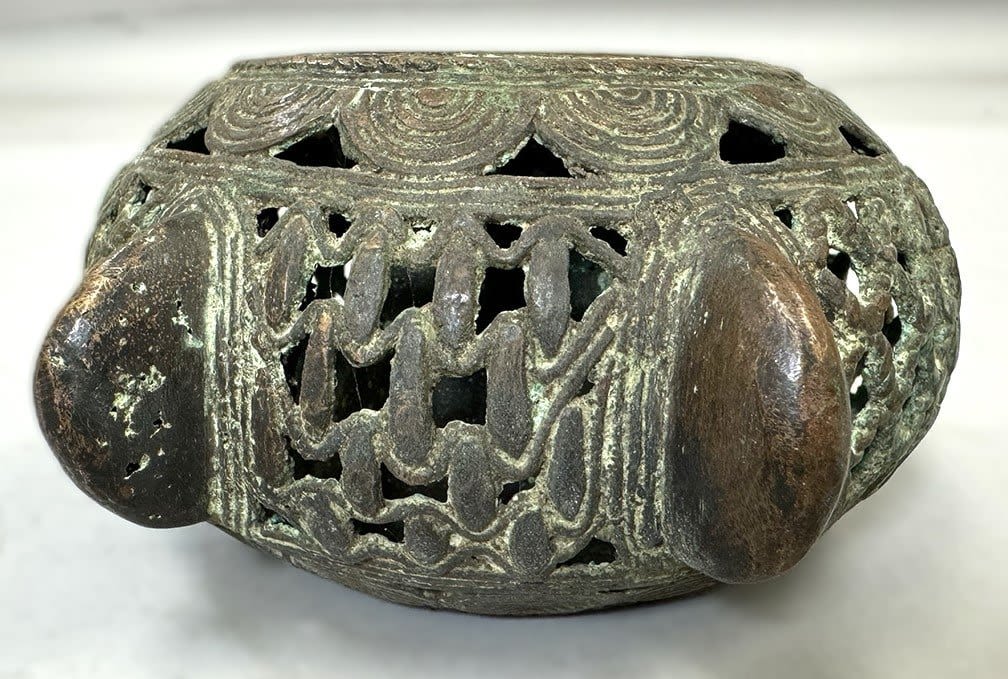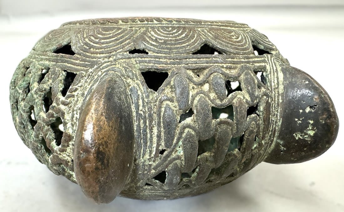A Bamileke copper alloy bracelet, Cameroon, Central Africa. Dimensions (approx.): 5" x 4.5" x 2.25"