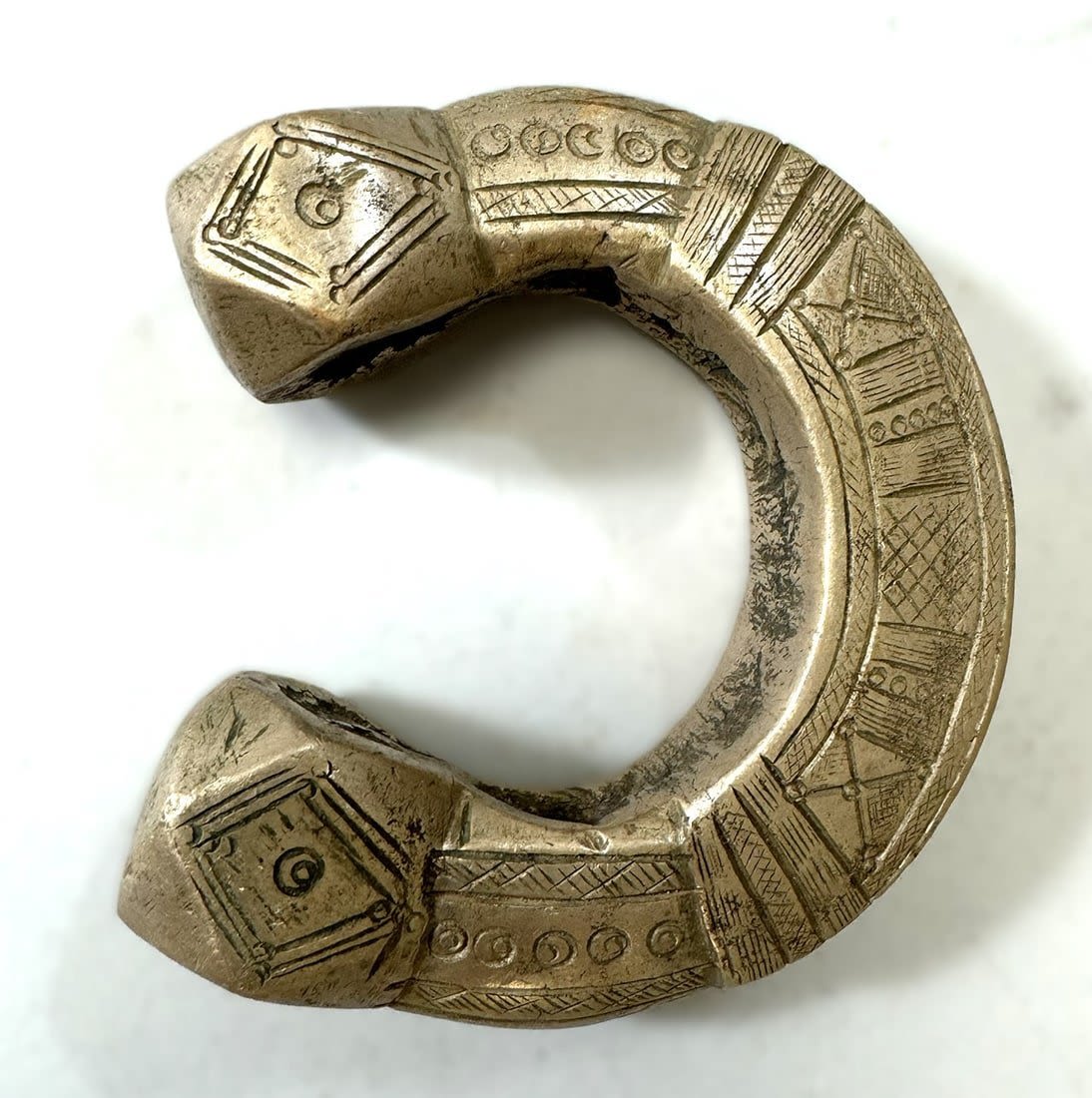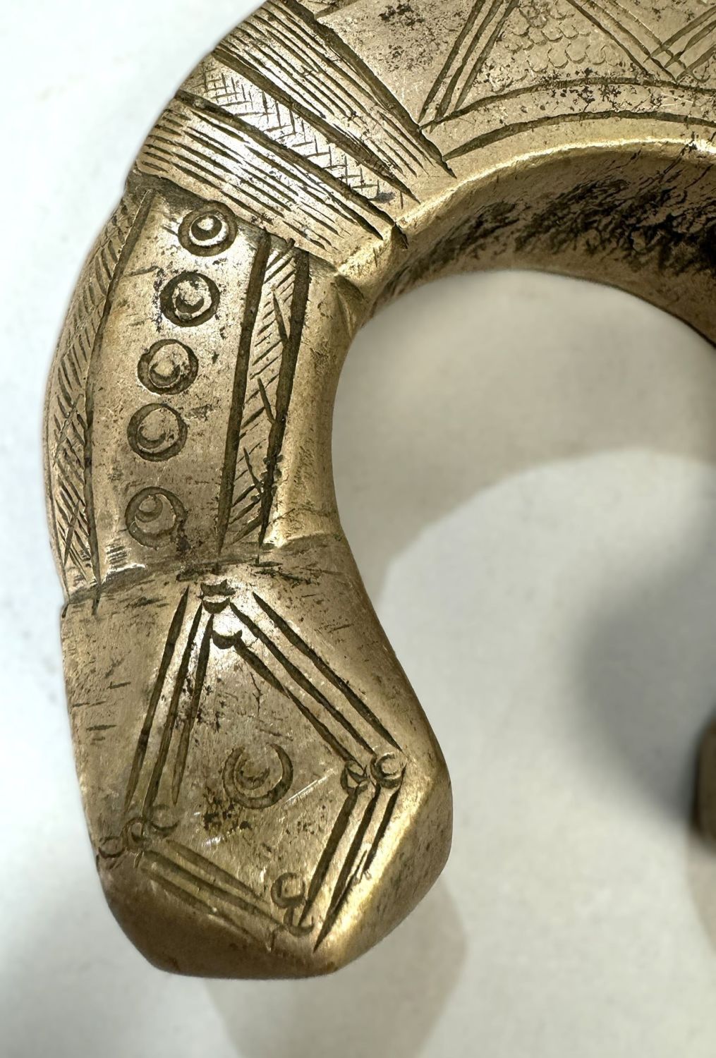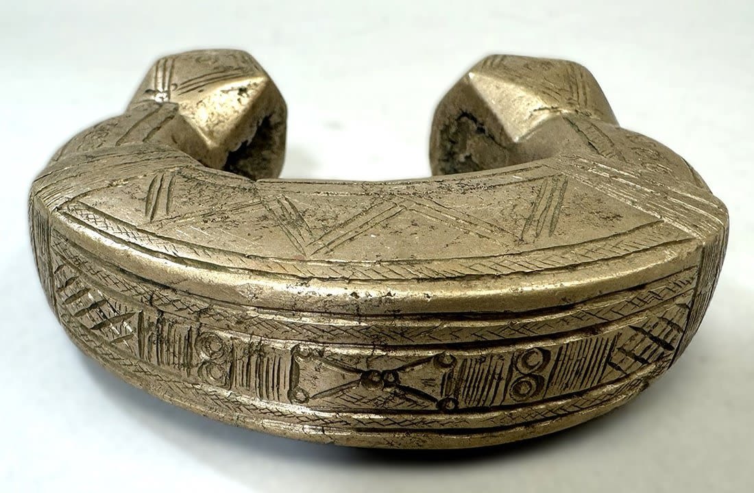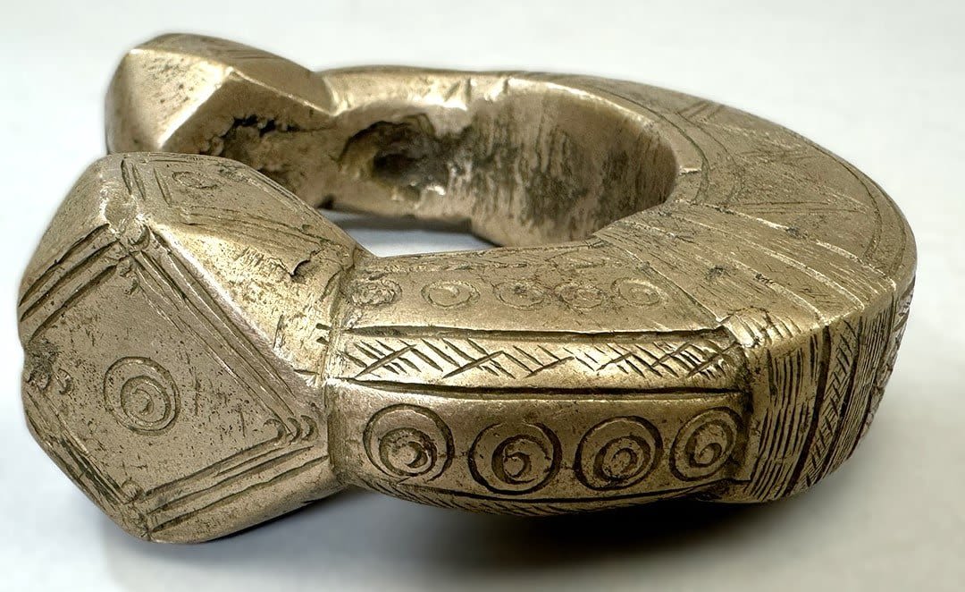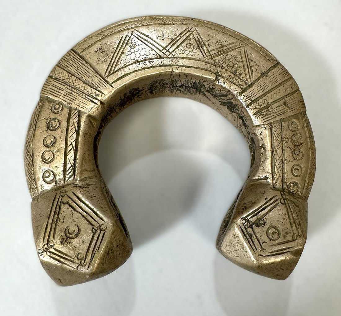 A heavy ankle bracelet or manilla from Niger, copper alloy, likely Djerma, Fulani or Gurunsi peoples, West Africa. Dimensions (approx.): 4" diameter