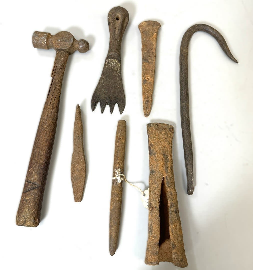 Seven (7) iron tools, mostly from the Kuba peoples, Democratic Republic of the Congo, Central Africa. Dimensions (approx.): 11" (longest) to 5.25" (shortest)