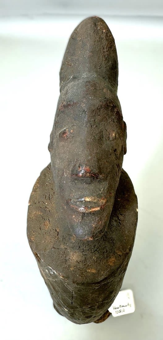 Carved wood figure, Mangbetu style, Democratic Republic of the Congo, Central Africa. Dimensions (approx.): 13.75" x 5" x 3"