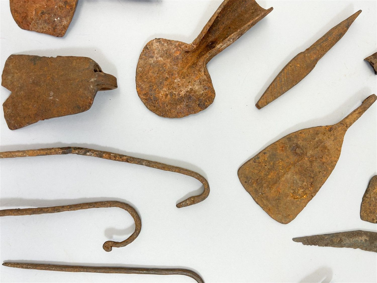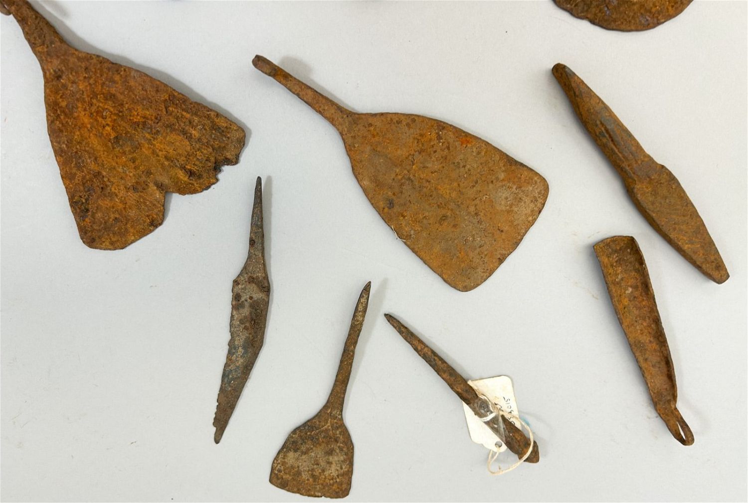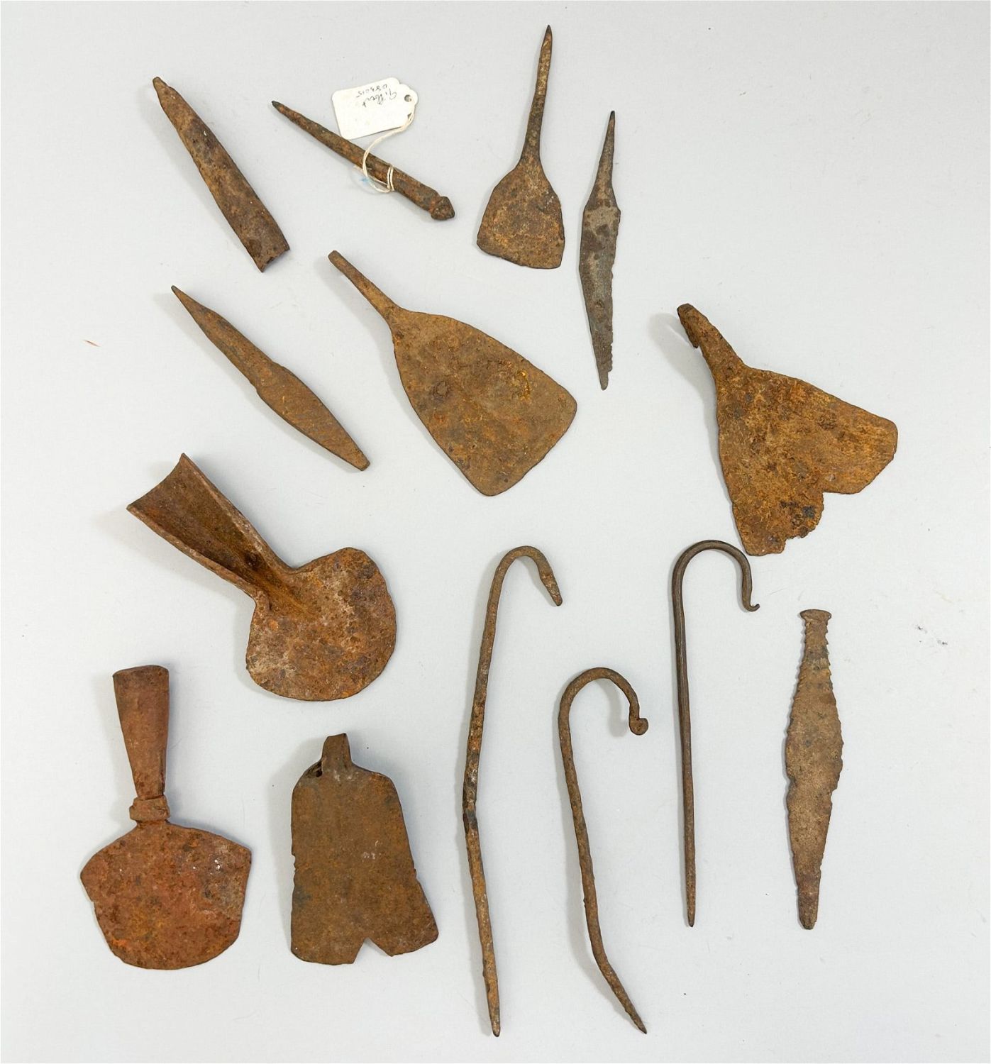 Fourteen (14) miniature forged iron currency forms, various cultures, West Africa. Approximate size, 9.25" high (largest)
