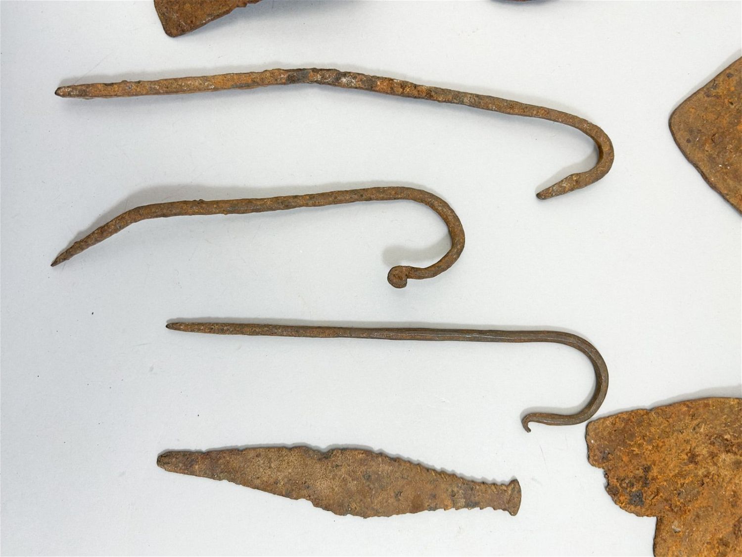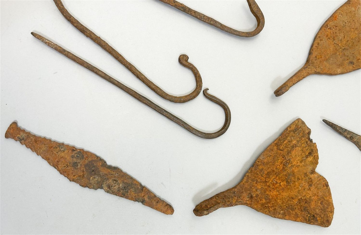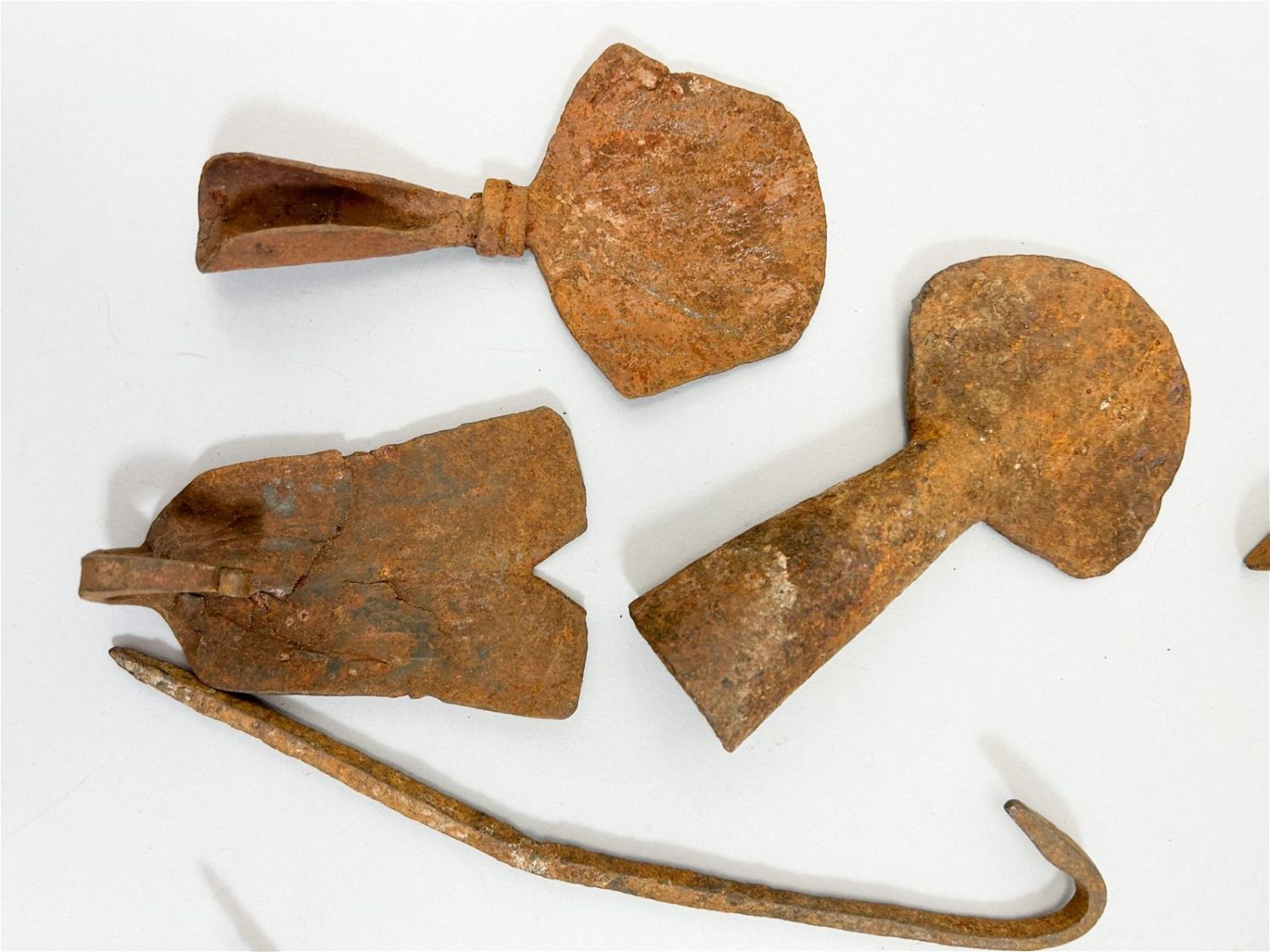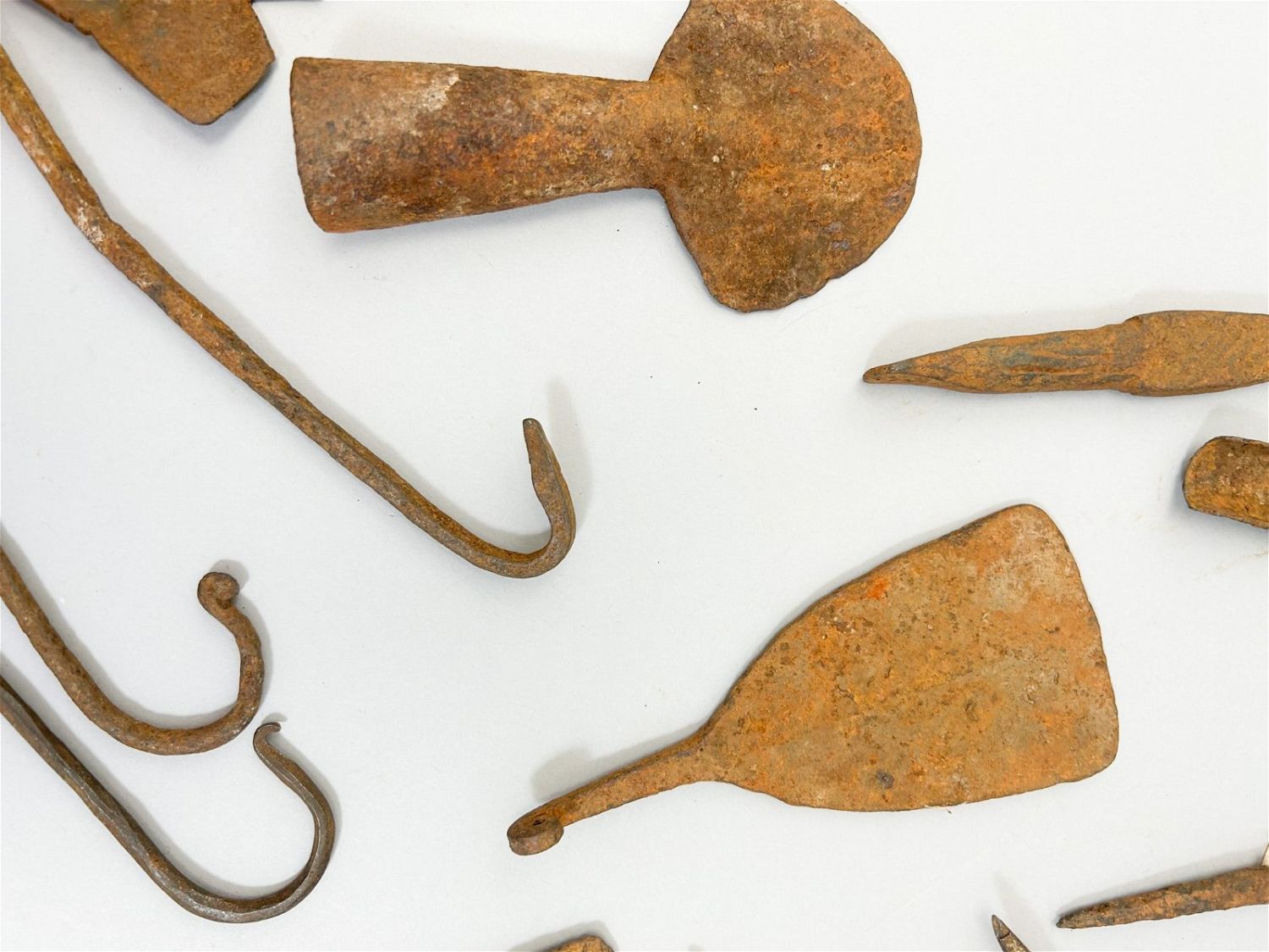 Fourteen (14) miniature forged iron currency forms, various cultures, West Africa. Approximate size, 9.25" high (largest)