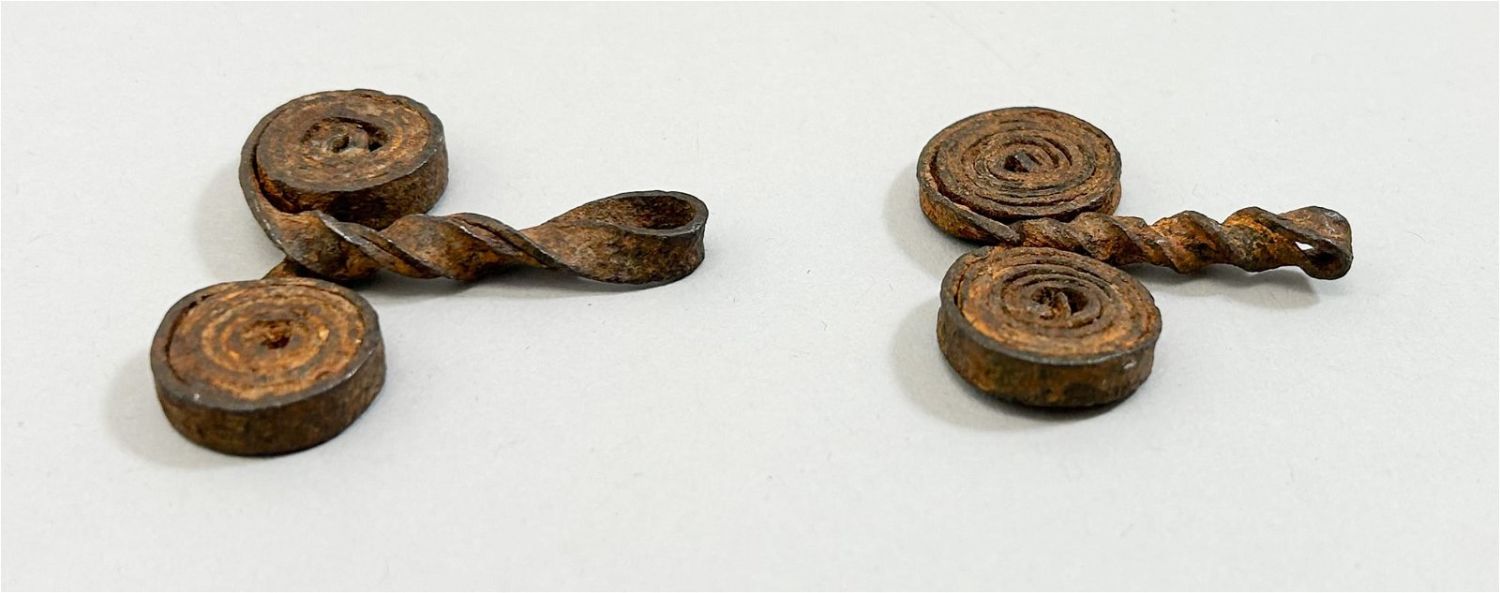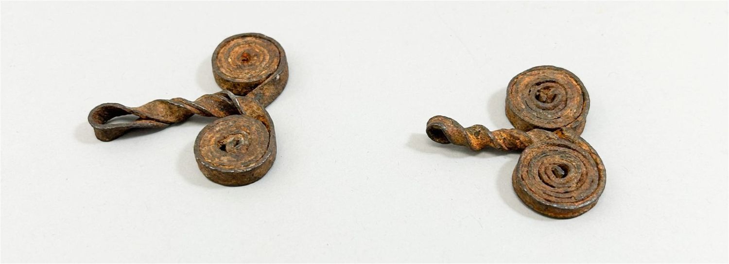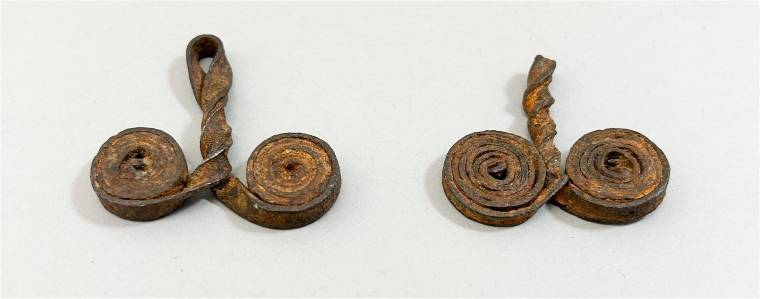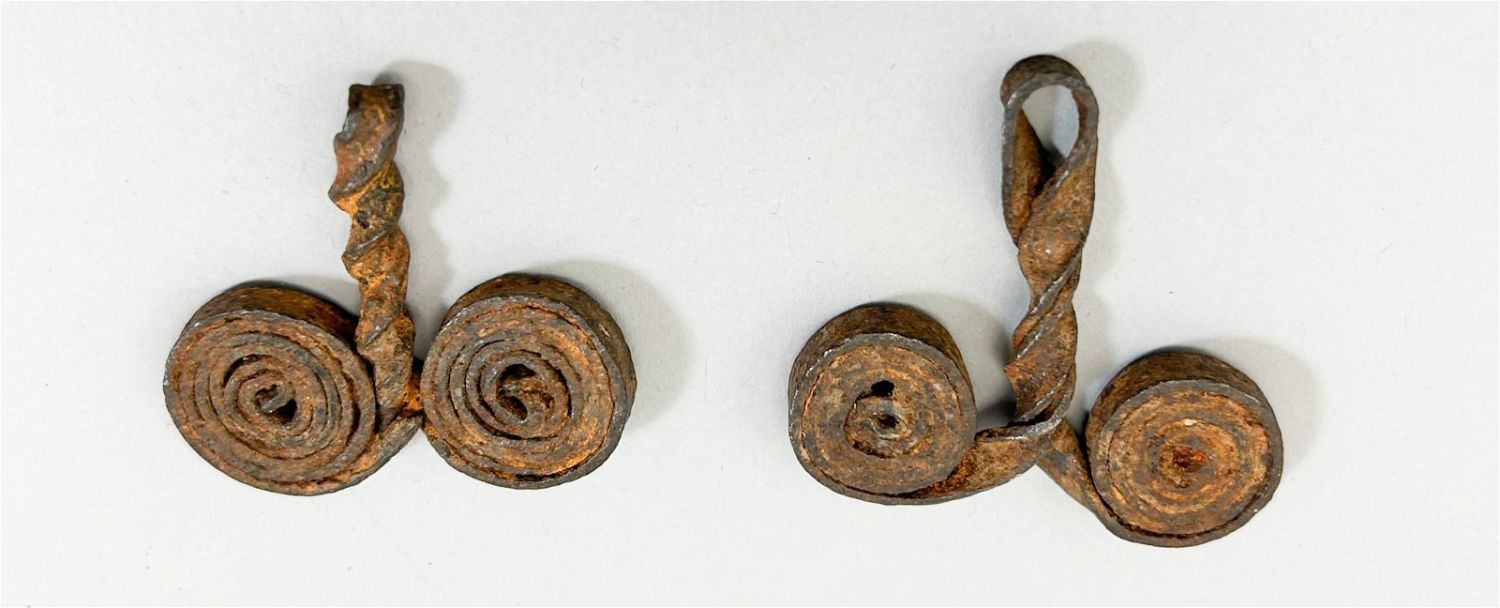 Kuba peoples wrought iron earrings (or currency), Central Africa. Approximate size 1.75" length earrings