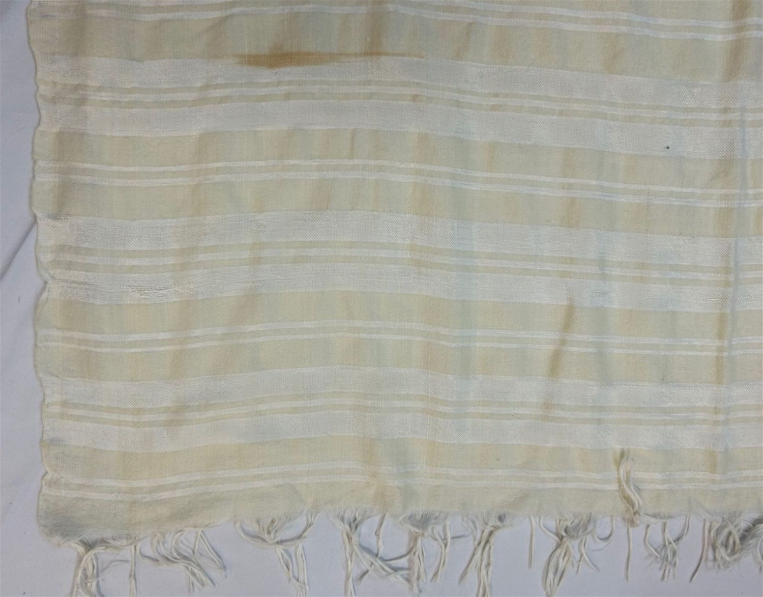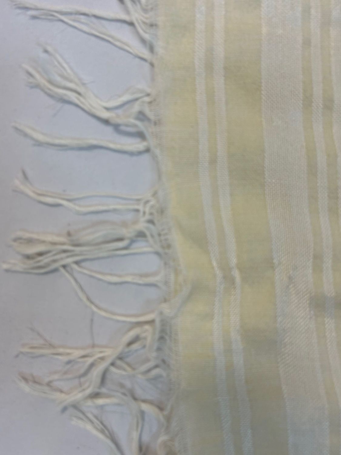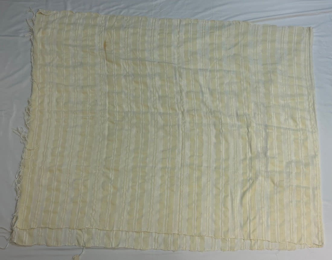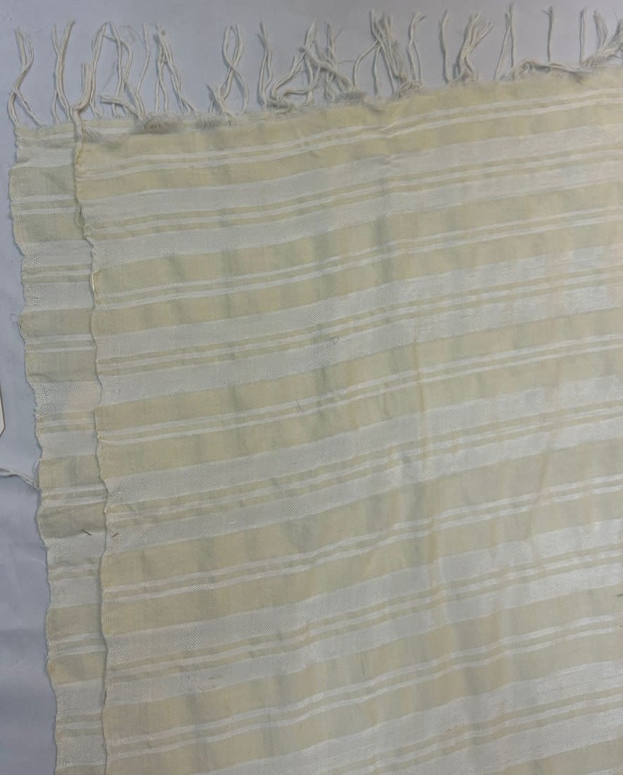 Male head covering for a wedding, North Africa, white and yellow woven textile, mid-20th century, 51" x 128"