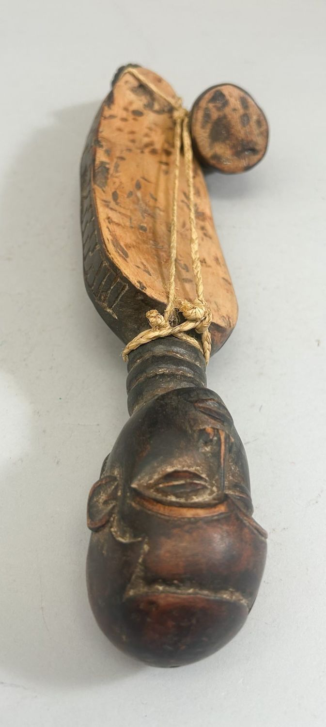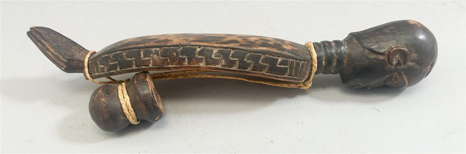 Kuba People Style Carved Wood Figure, South-western of Democratic Kongo, Central Africa, 13.5" x 2.5" x 2.25"